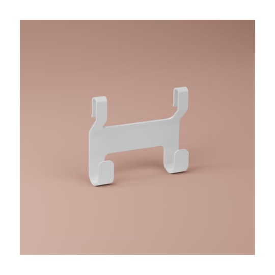 Dubbelkrok som hängs i trådhylla, kan användas enbart som krok eller som klädstångshållare och krok. Säljs i par.