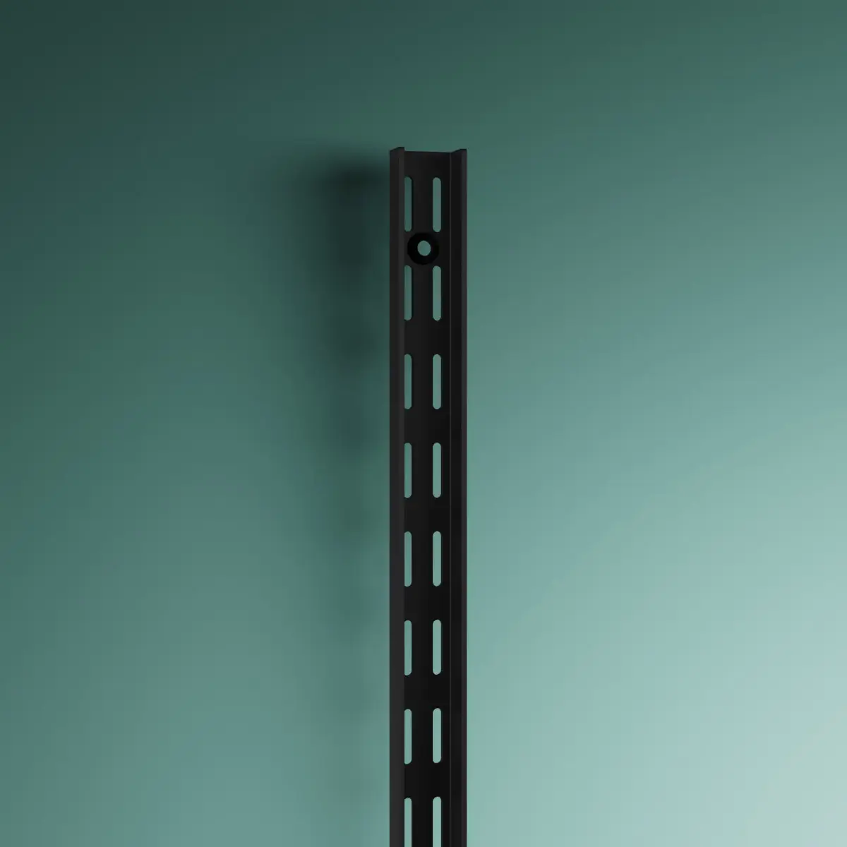 Skena för väggfast montering. Skenan skruvas fast i väggen. Kan kapas till önskad längd. 5 skruvhål. Avståndet mellan varje skena bör inte överstiga 900 mm.