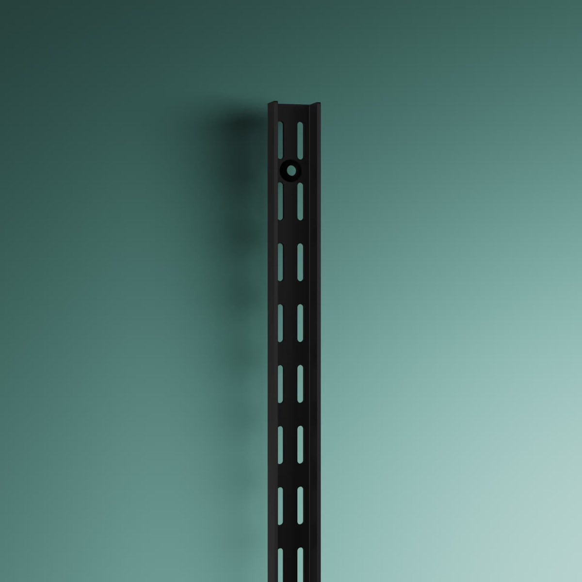 Skena för väggfast montering. Skenan skruvas fast i väggen. Kan kapas till önskad längd. 2 skruvhål. Avståndet mellan varje skena bör inte överstiga 900 mm.