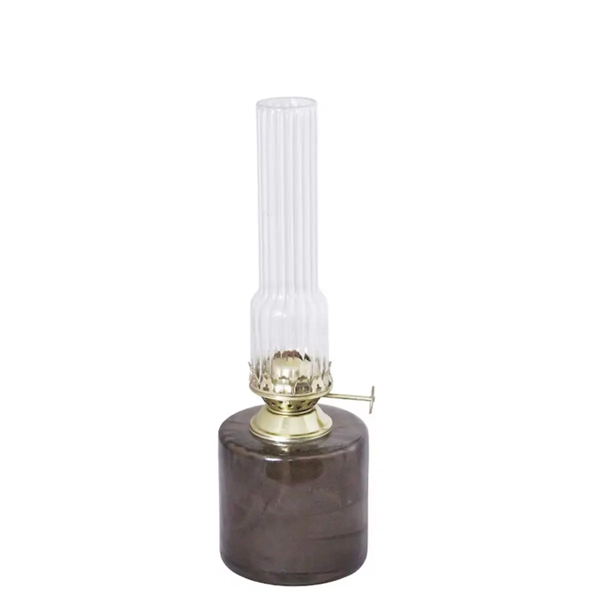 Elegant fotogenlampa i vackert brunt räfflat glas och mässingsbrännare, inklusive en veke. Lampan är tillverkad av 50-60% återvunnet glas och passar med veke artikelnummer 116210 samt brännarerör med artikelnummer 139420G eller 121800G. Använd gärna tillsammans med Strömshagas lampolja (artikelnummer 100001), säljs separat.