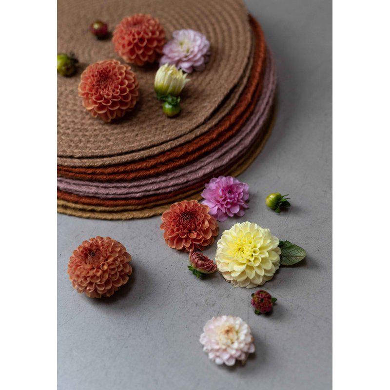 En dekorativ rund tablett i jute, som är lika fin till bordsdukningar som till dekoration. Varje tråd av jute är grov och robust, och tillsammans skapar de en oregelbunden och charmigt rustik yta.