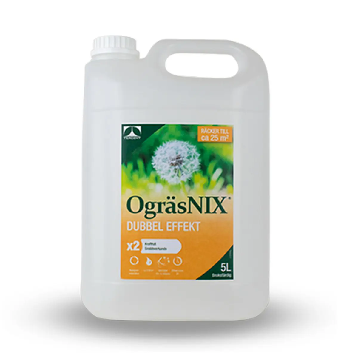 OgräsNIX Dubbel Effekt tränger snabbt in i växtcellerna och ogräset dör inom ett par timmar efter behandlingen. OgräsNIX Dubbel Effekt verkar kraftfullt mot både frö- och rotogräs och är biologiskt nedbrytbar.