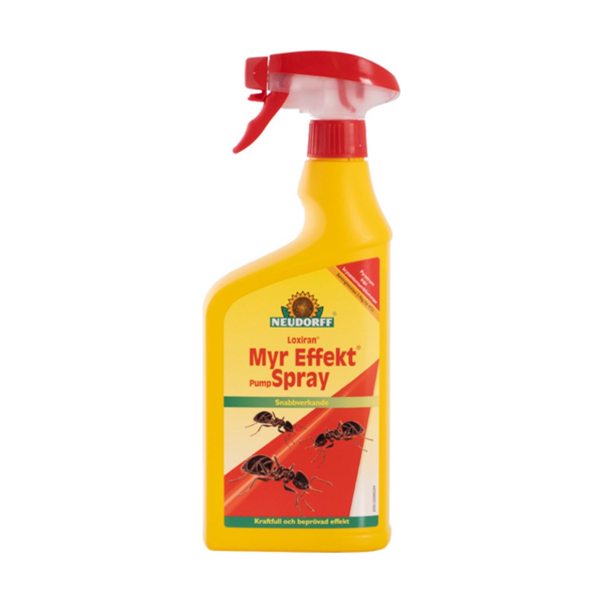 Myrspray för effektiv bekämpning av myror utomhus. Innehåller pyretrum - en substans utvunnen ur krysantemumblomman. Myr Effekt dödar myrorna genom direktkontakt, därför ska både boets in- och utgångar och arbetsmyrornas gångstråk behandlas.