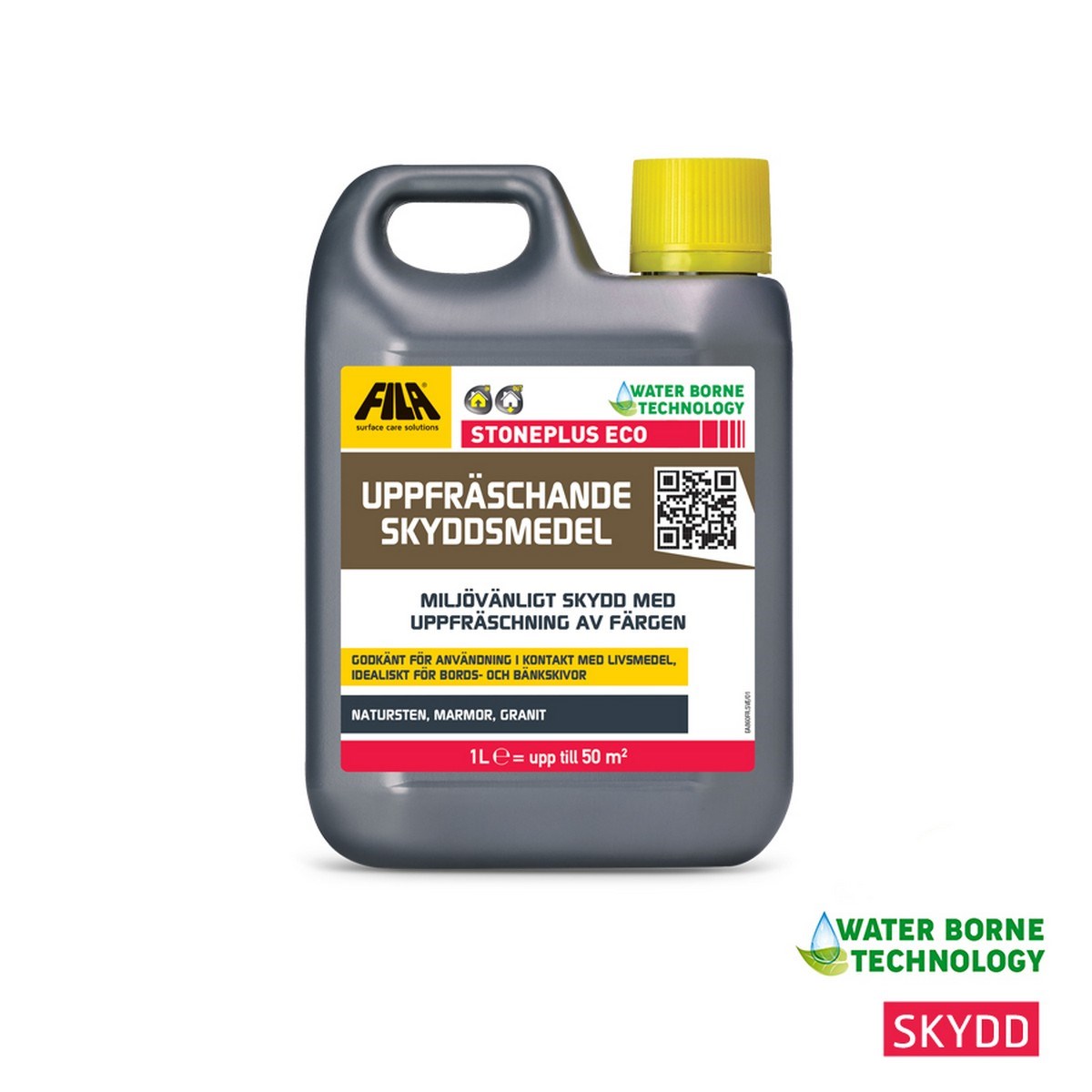 Skyddande medel med uppfräschande effekt. Skyddar och förstärker naturstens färg och utseende. Tränger djupt ned i materialet, vilket minskar absorptionen av smuts.