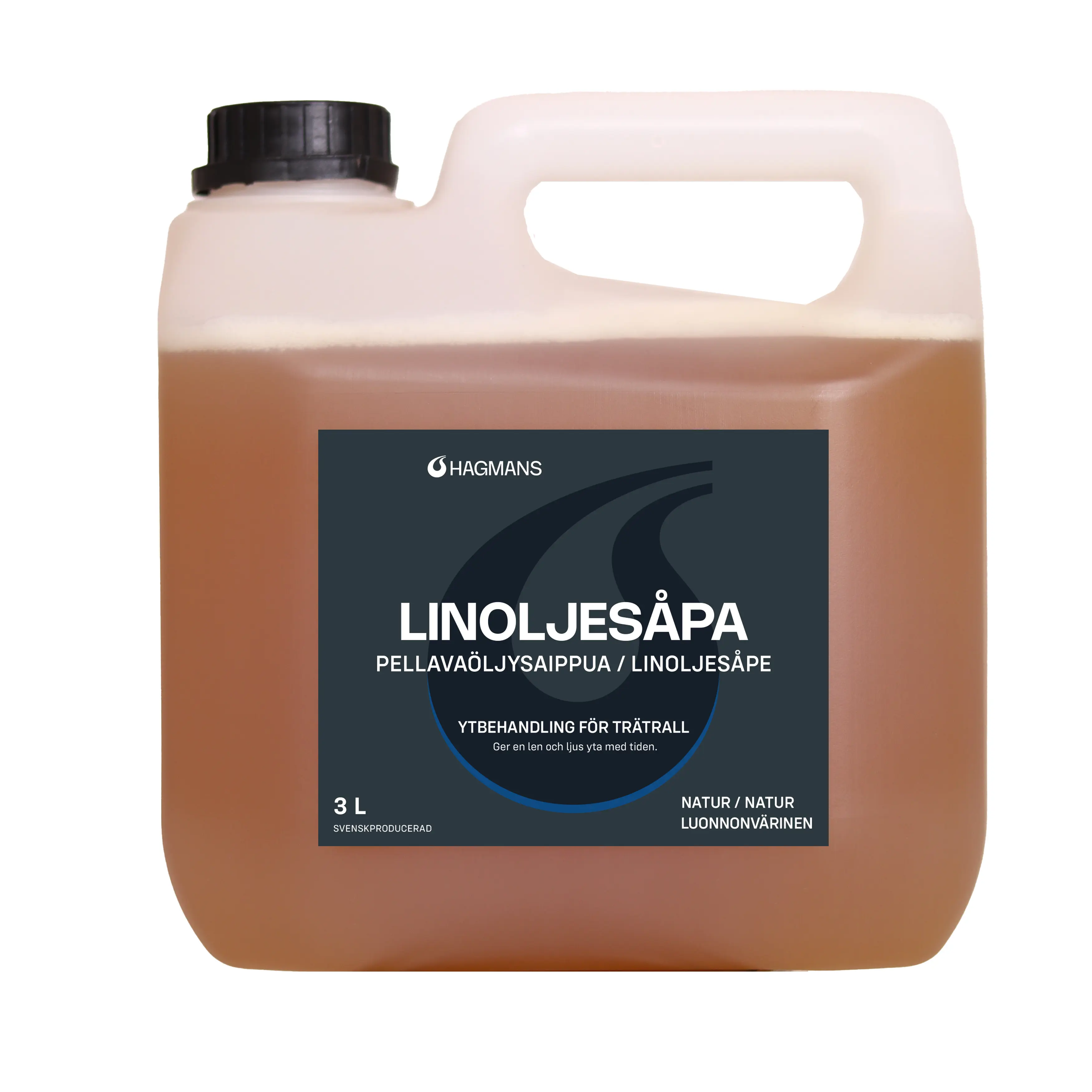 Hagmans Linoljesåpa används för rengöring och ytbehandling av trätrall och altan med såpa. Kan användas på både impregnerat och obehandlat trä. Lämpar sig även för trädgårdsmöbler, marksten och rengöring av utomhusytor och redskap. För riktigt smutsiga altaner kan Hagmans Trallrent behövas innan man behandlar med Linoljesåpa. Produkten kan också användas inomhus för den som önskar