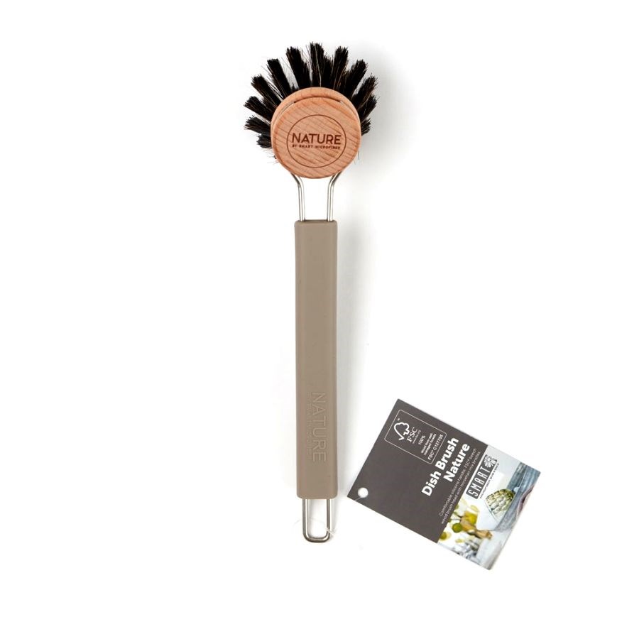 Smart Microfiber Diskborste. Diskborsten har ett bekvämt silikonhandtag samt ett borsthuvud i FSC-märkt bokträ och en tagelmix-borst. Den är skonsam vid diskning av silver, glas och kristall och samtidigt effektiv att rengöra kastruller och stekpannor med.