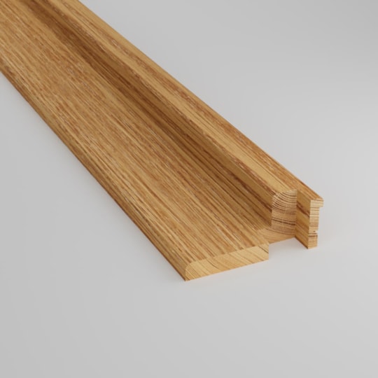 Tröskel i massiv och lackad ek, 09 68. Hög tröskel för våtrum med möjlighet till uppvik av tätskikt.