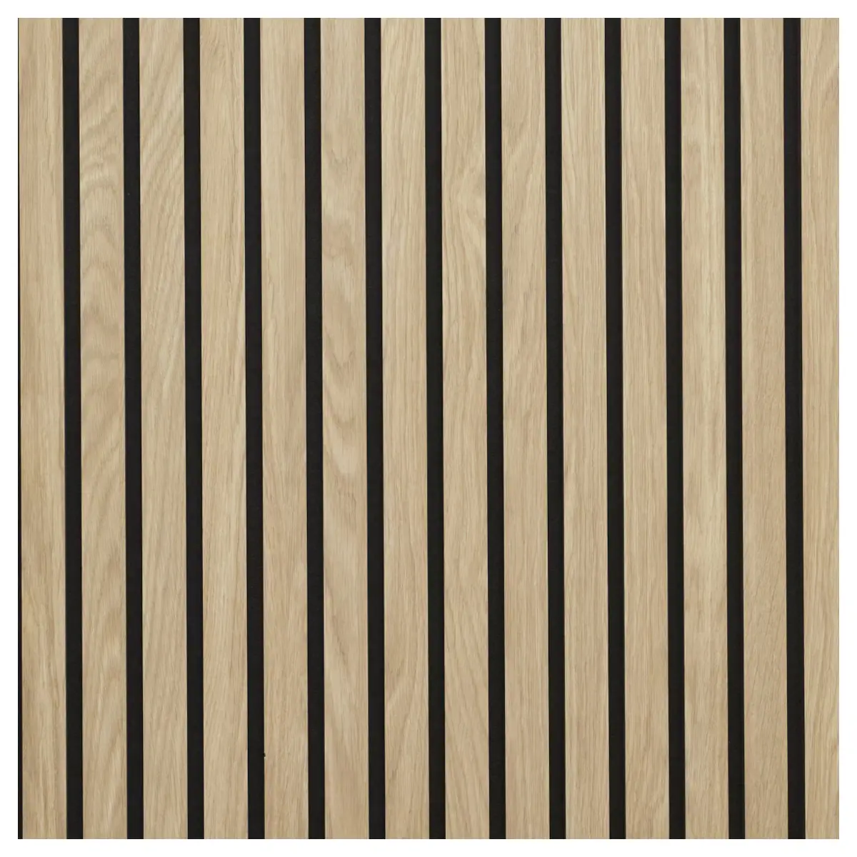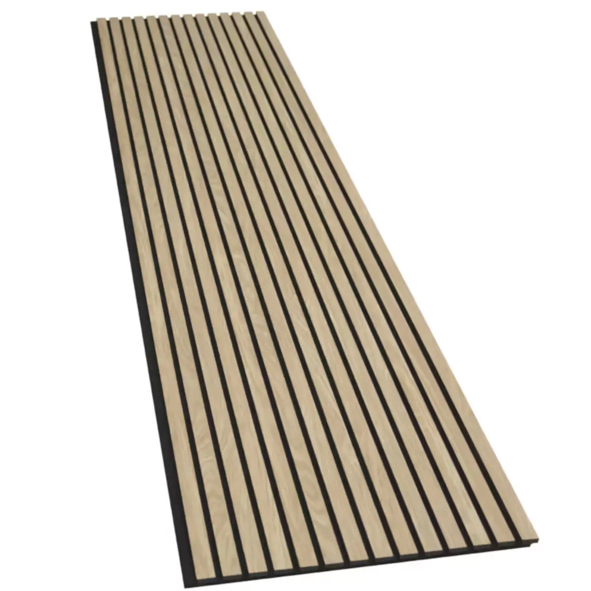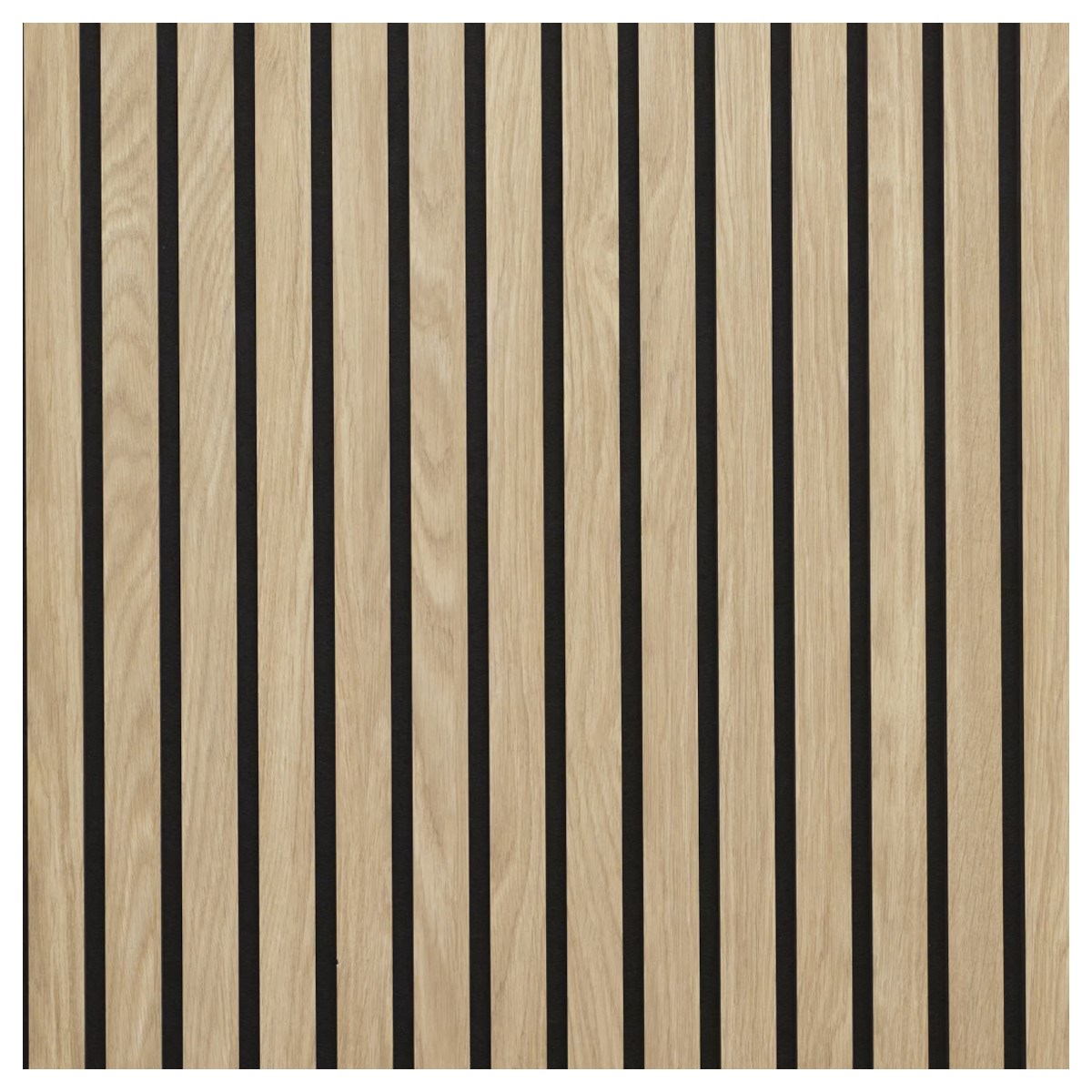 Varje panel består av 14 st ribbor med genomfärgad svart MDF-kärna som har en naturtrogen dekor. Dessutom är akustikpanelerna helt underhållsfria och enkla att montera. Bakom ribborna sitter en 9 mm svart polyesterfilt som är producerad av återvunna PET-flaskor och det används enbart trä som kommer från hållbart skogsbruk.
