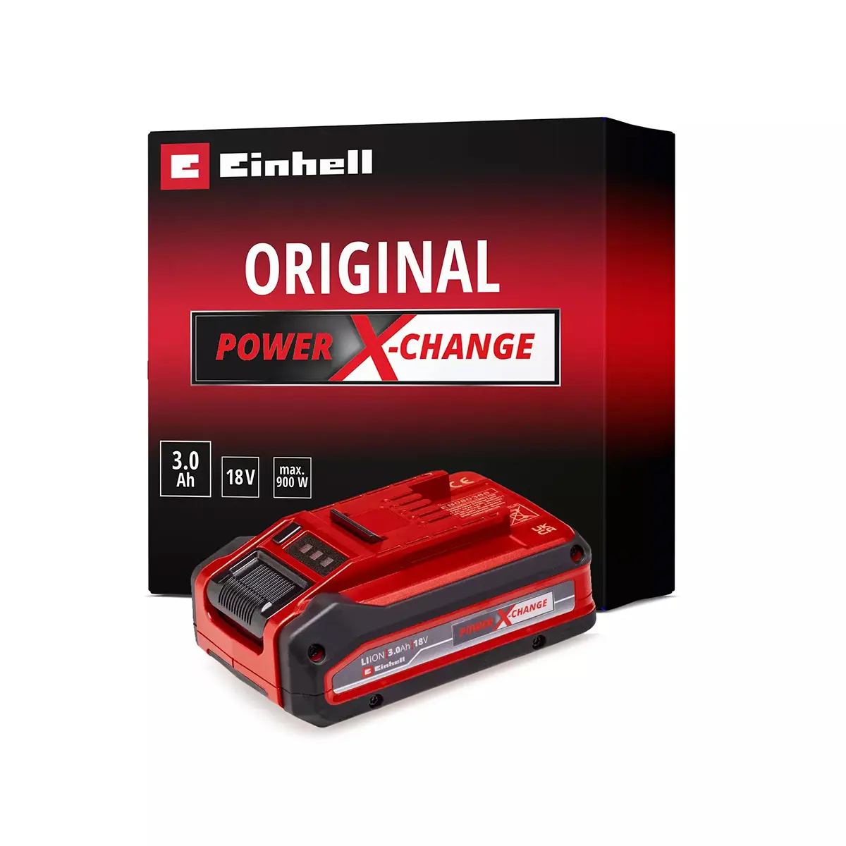Einhell 18 V 3,0 Ah Power X-Change PLUS ingår i det multifunktionella batterisystemet Power X-Change från Einhell, som kan kombineras fritt med varandra. De universella Power X-Change-batterierna försörjer alla sladdlösa apparater i hela produktfamiljen inom trädgårds- och verkstadssegmentet med kraft och uthållighet. Fördelarna för kunderna är uppenbara: Med ett batteri och en laddare för alla apparater sparar man inte bara avsevärt när det gäller anskaffningskostnader, den universella användningen är skonsam för miljön och ger samtidigt flexibilitet inom hem och trädgård. Man slipper dessutom oordning och kaos med olika batterier och laddare för varje enskild apparat. Den senaste generationens litiumjonceller ger 100% mer kraft för maximal kraft för alla användningsområden med en 13% mer kompakt konstruktion och 10% viktminskning. Dessutom står PLUS-teknologin för extra kraft vid effektkrävande arbete. Vidare har det högkvalitativa batteriet ingen Memory-effekt eller annars vanlig självurladdning. Det har konstant stor kraft.