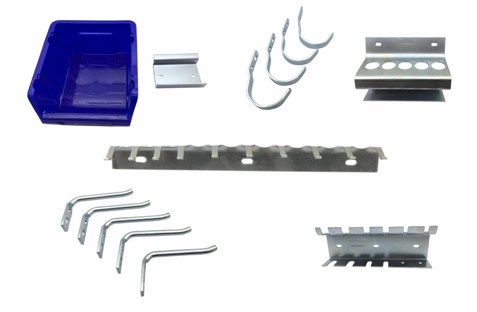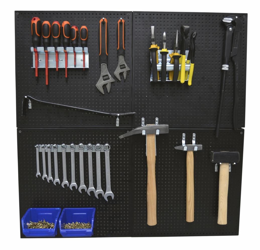 Det är inte alltid så lätt att hålla reda på sina verktyg. Därför har vi satt ihop ett startset som innehåller en verktygstavla med 17 delar. Verktygstavlan har hål för krokar, askar och andra typer av hållare. Det kommer till nytta om det är något du har mycket av. Det råder inga tvivel om att en verktygstavla är ett ytterst praktiskt redskap att ha i verkstaden