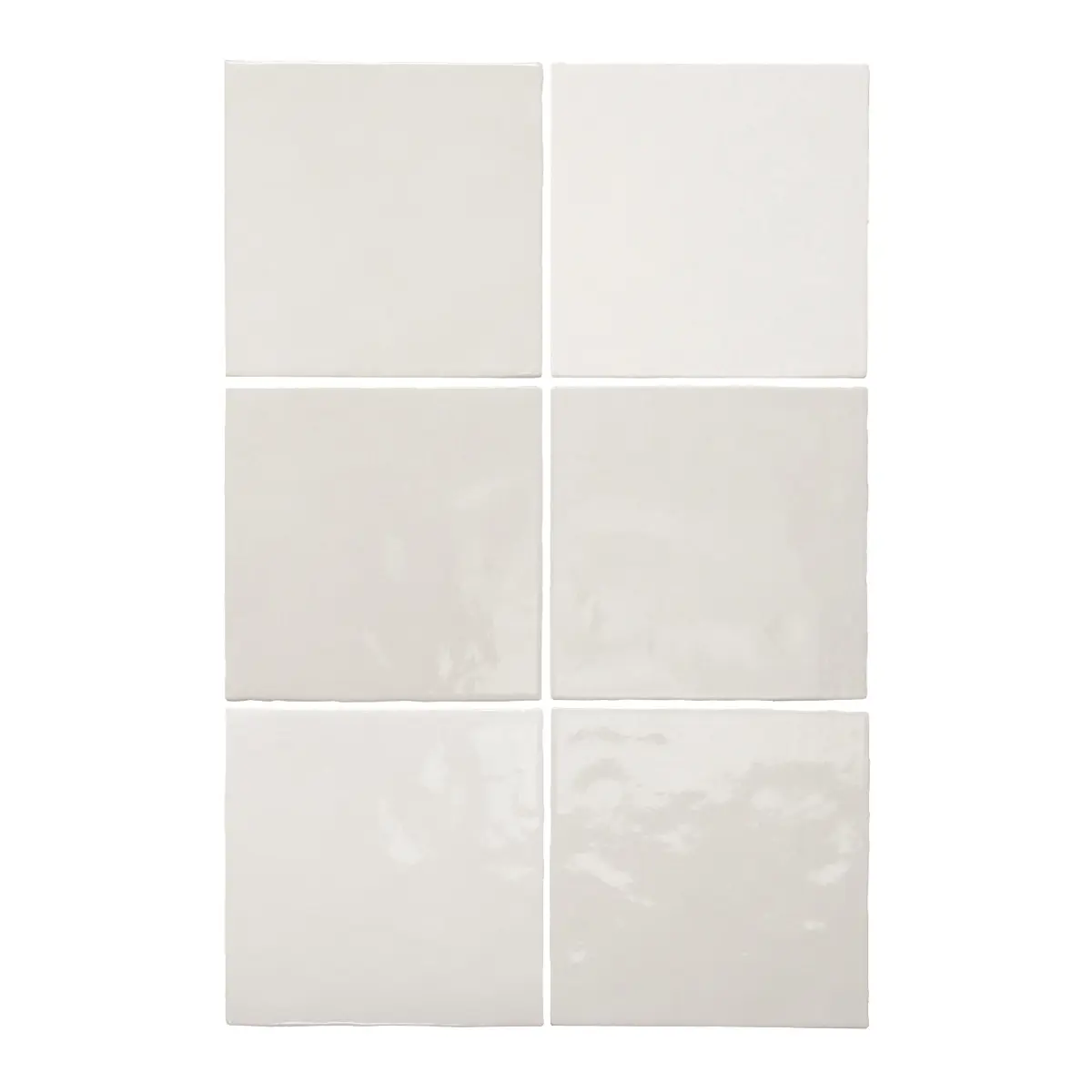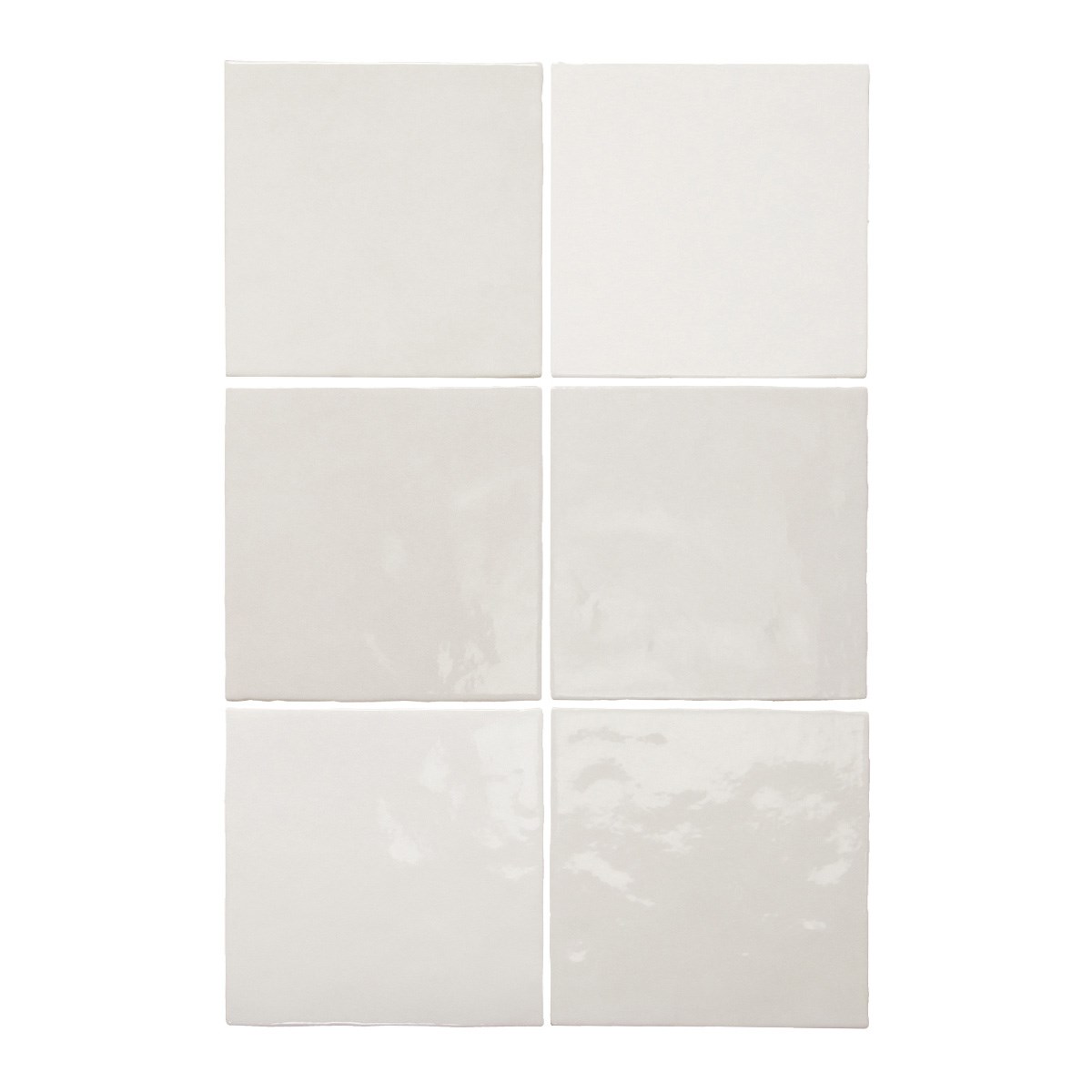 Equipe Artisan White 13.2x13.2 är en platta i en varierande vit färg med en vågig och blank yta. Plattans kanter är pressade och något ojämna, vilket skapar ett snyggt rustikt intryck.