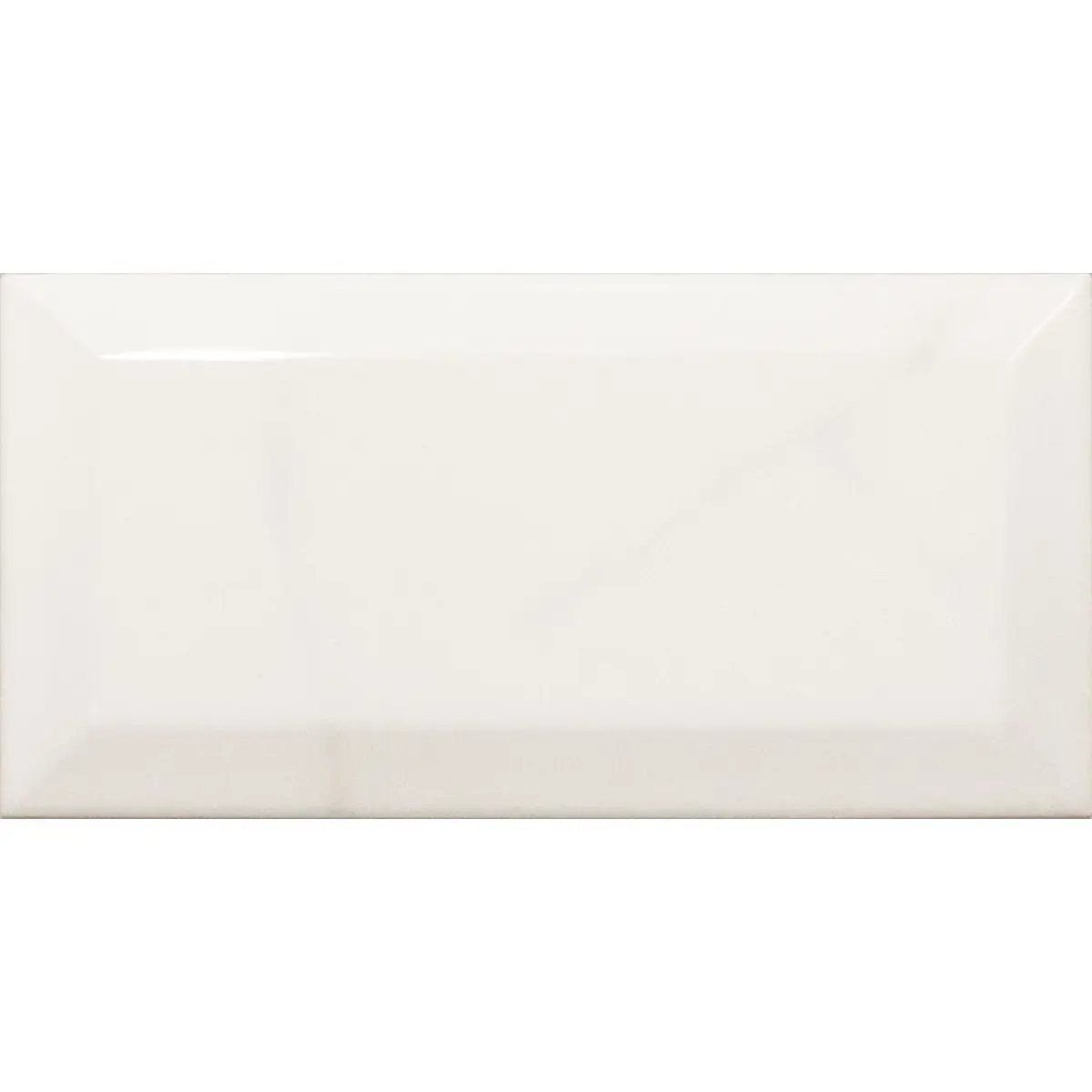 Equipe Carrara Metro 7,5x15 är en vit fasad platta med ett marmorimiterat mönster i en ljust grå färg, plattan har en pressad kant och en blank yta.
