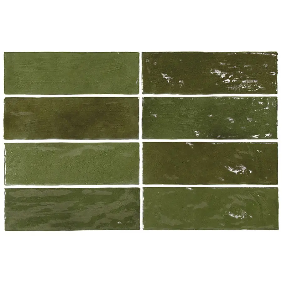 Equipe La Riviera Botanical Green 6,5x20 är en är en platta i en djup skogsgrön färg med en vågig och blank yta. Plattans kanter är pressade och något ojämna, vilket skapar ett snyggt rustikt intryck.