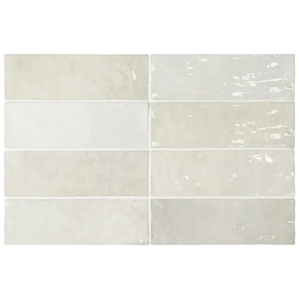 Equipe La Riviera Vert 6,5x20 är en är en platta i en varierande ljust beige färg med en vågig och blank yta. Plattans kanter är pressade och något ojämna, vilket skapar ett snyggt rustikt intryck.