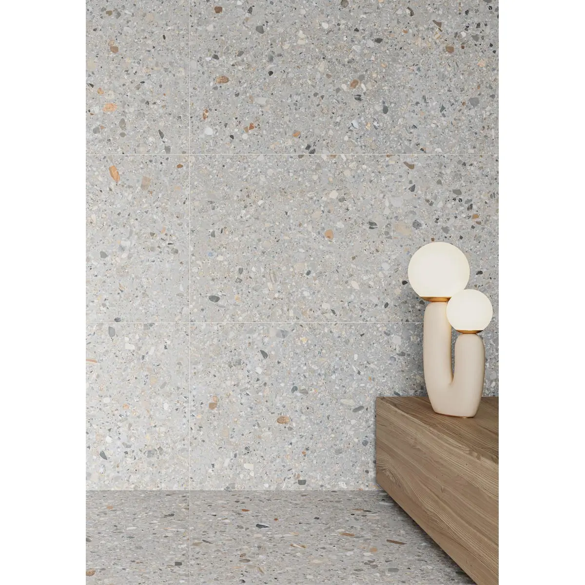 Keope Dolmix Light 60x60 är en terrazzo imitation platta med en ljusgrå grundfärg med inslag av flera olika färgade stenkorn i mönstret. Plattan har en matt yta och skurna kanter. Keope Dolmix lämpar sig på golv och vägg i hemmets alla rum och även utomhus.
