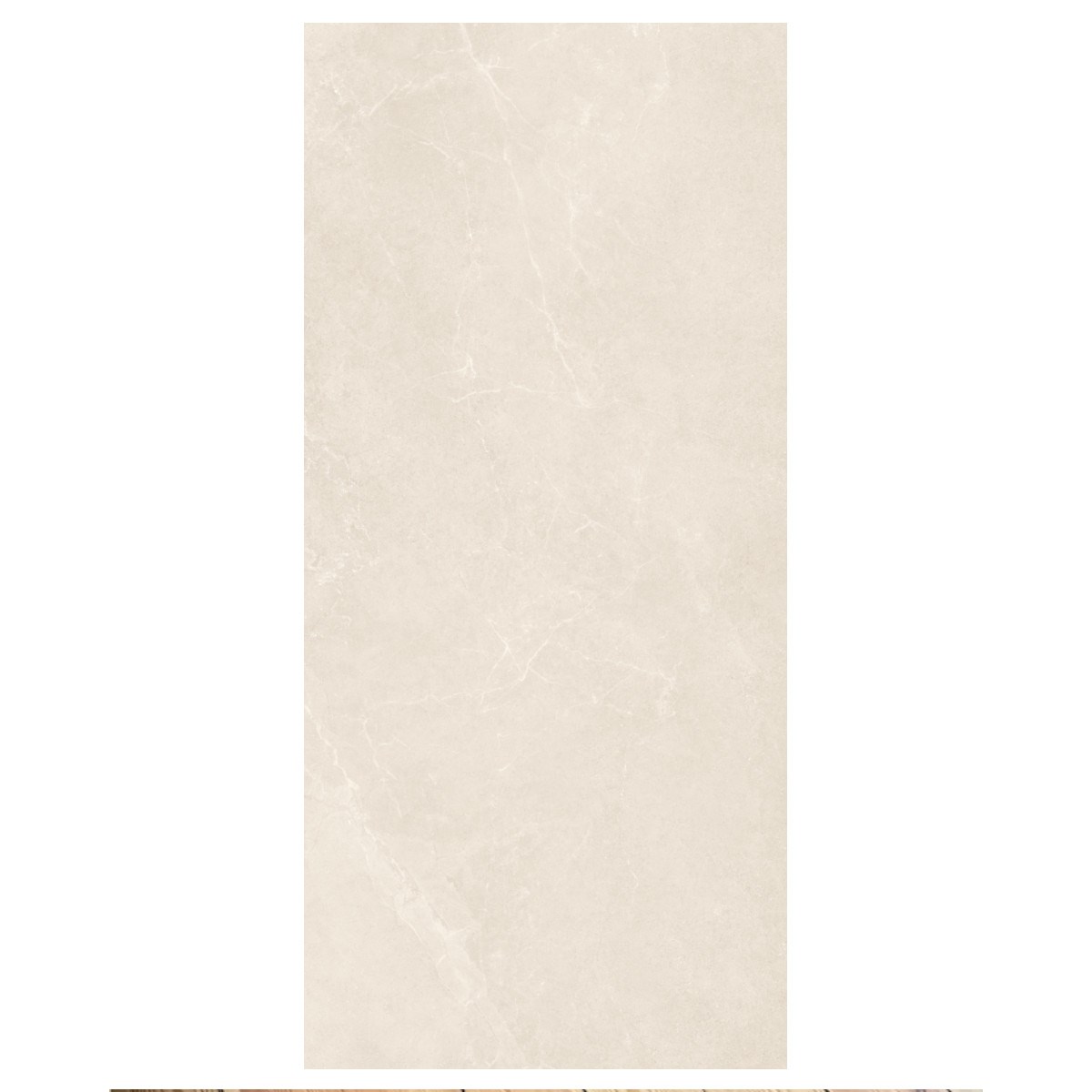 Solid Cream 120x60 är en matt stenimitation i en ljust beige färg med en skuren kant, stenmönstret i plattan skapar ett harmoniskt intryck och kan beskrivas som en lätt marmorering.