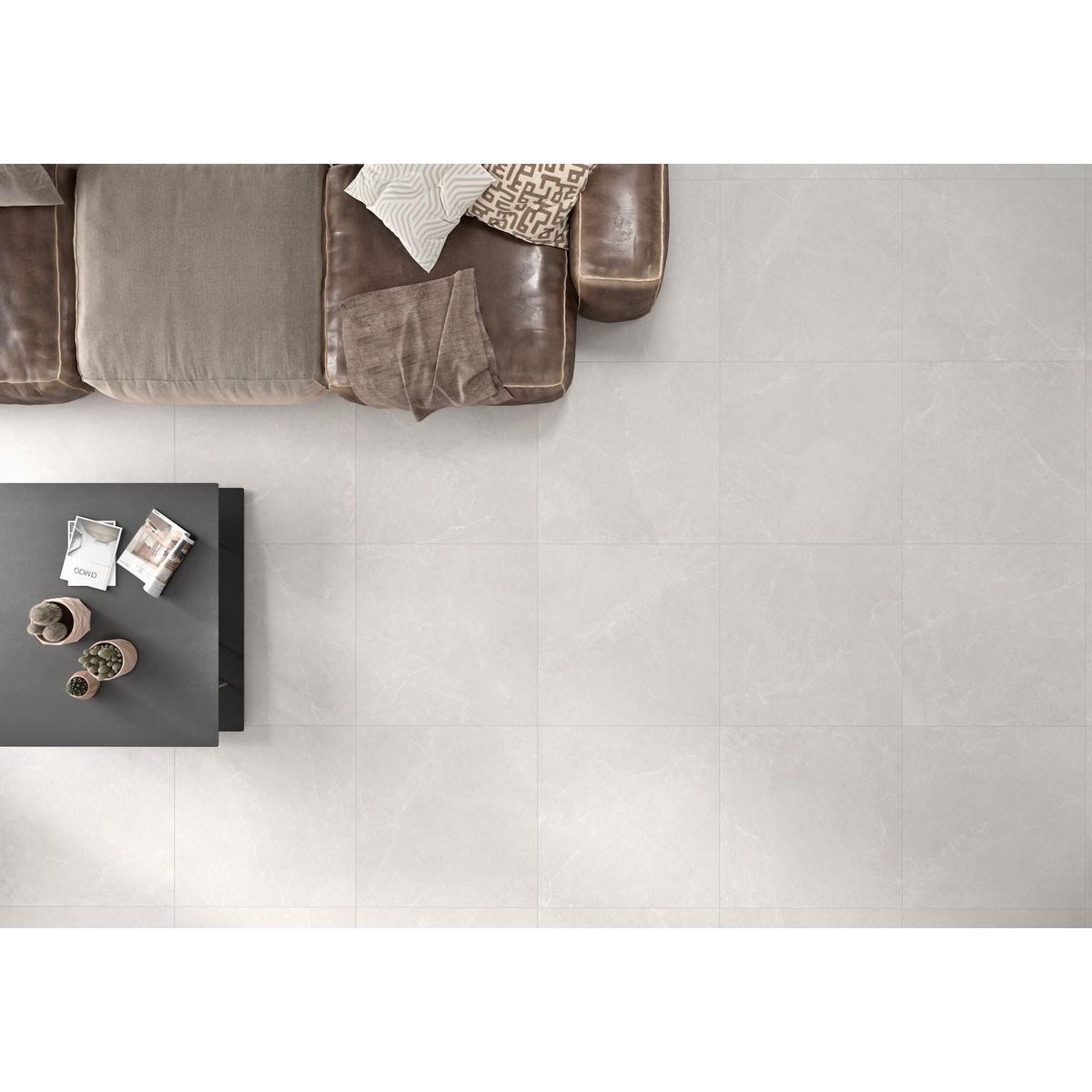Solid White 30x60 är en matt stenimitation i en varmt vit färg med en skuren kant, stenmönstret i plattan skapar ett harmoniskt intryck och kan beskrivas som en lätt marmorering.