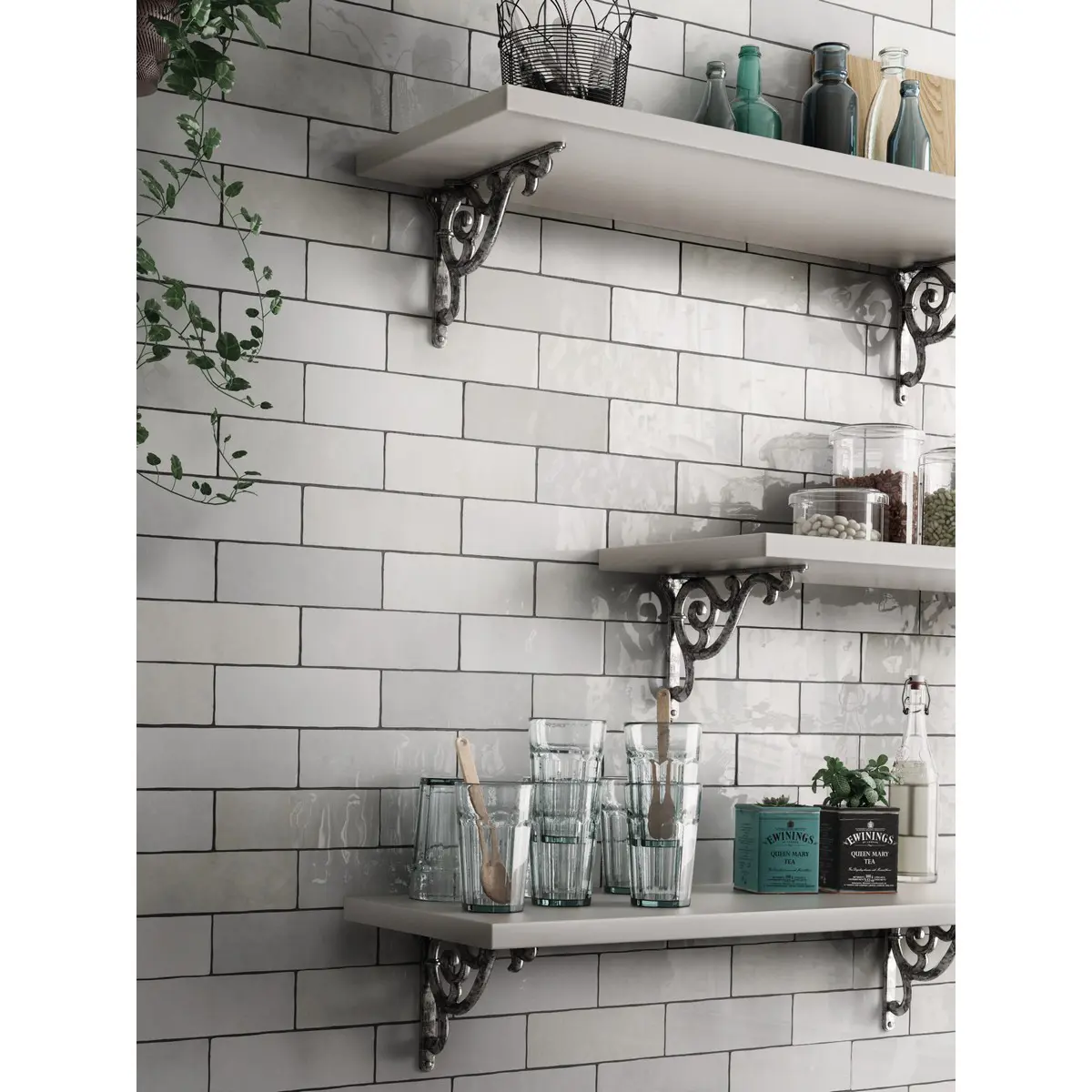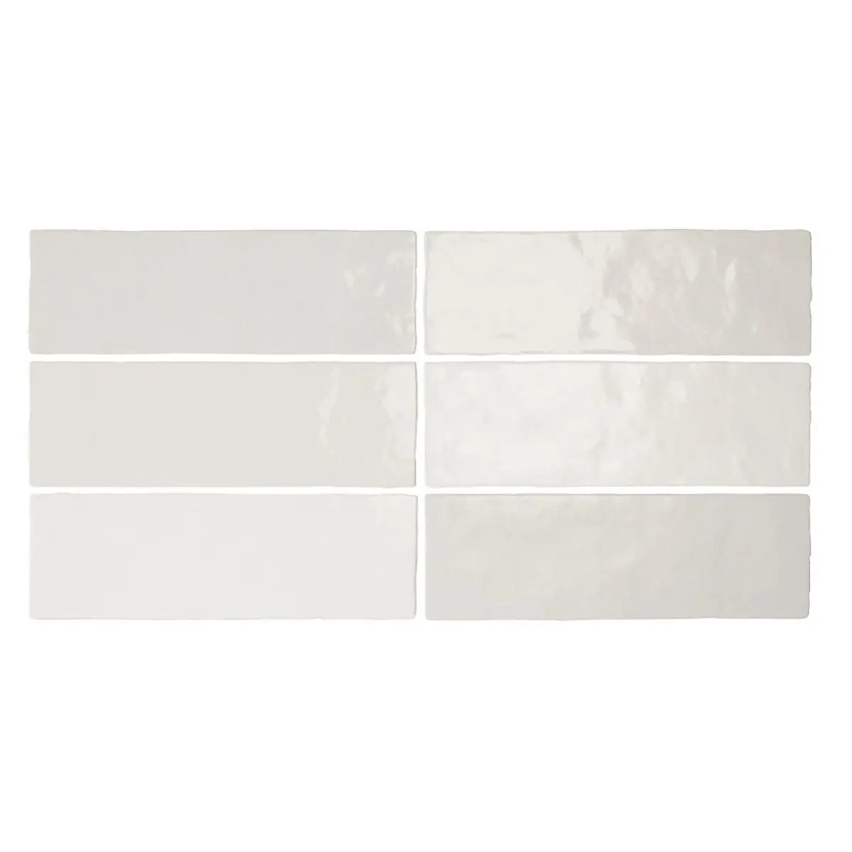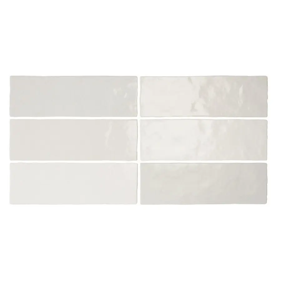Equipe Artisan White 6,5x20 är en platta i en varierande vit färg med en vågig och blank yta. Plattans kanter är pressade och något ojämna, vilket skapar ett snyggt rustikt intryck.