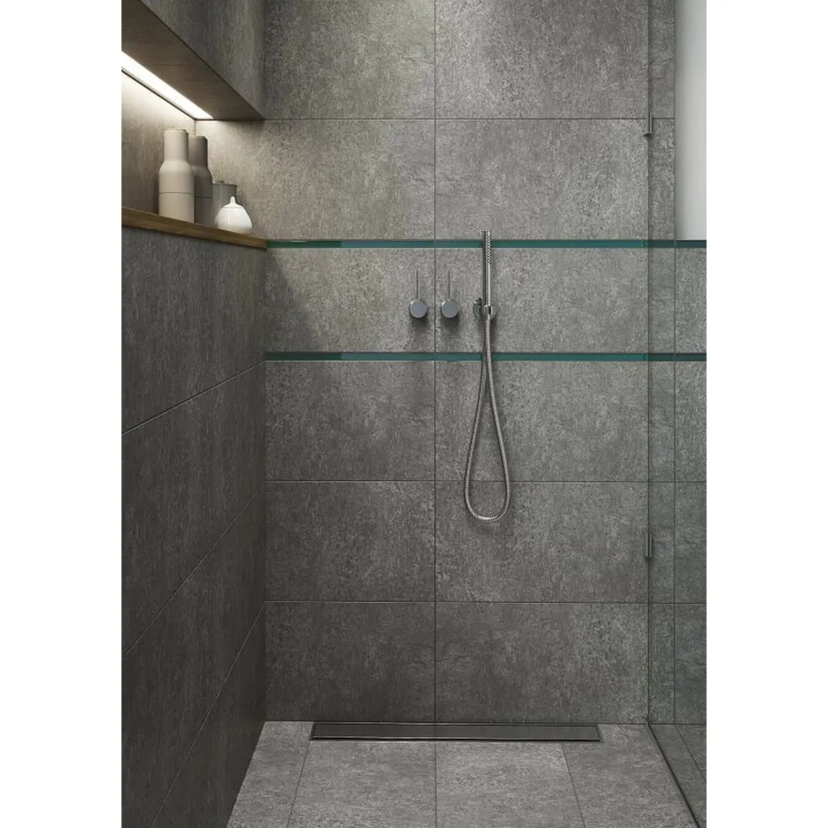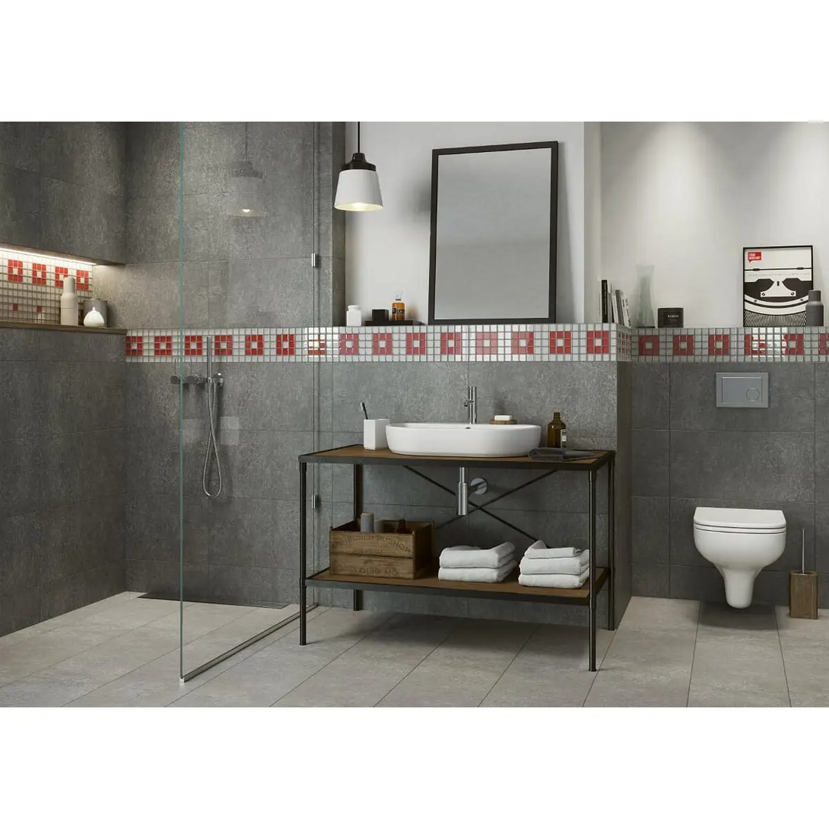 Cersanit Monti Graphite 30x60 är en betongimitation i en grafitgrå färg, den har en pressad kant och ett jämnt mönster som skapar ett stilrent intryck. Plattan är heterogen vilket innebär att leran inte matchar plattans mönster.