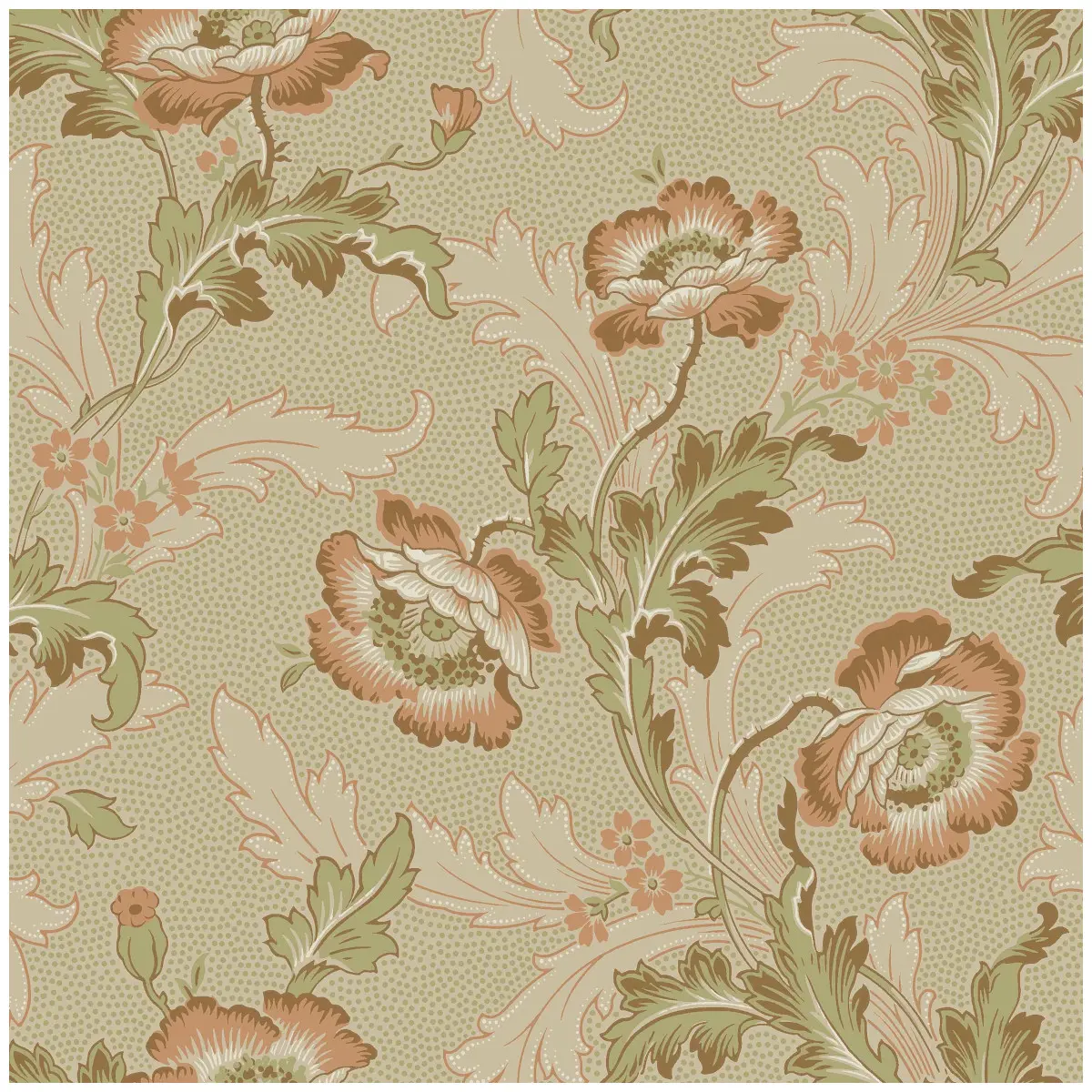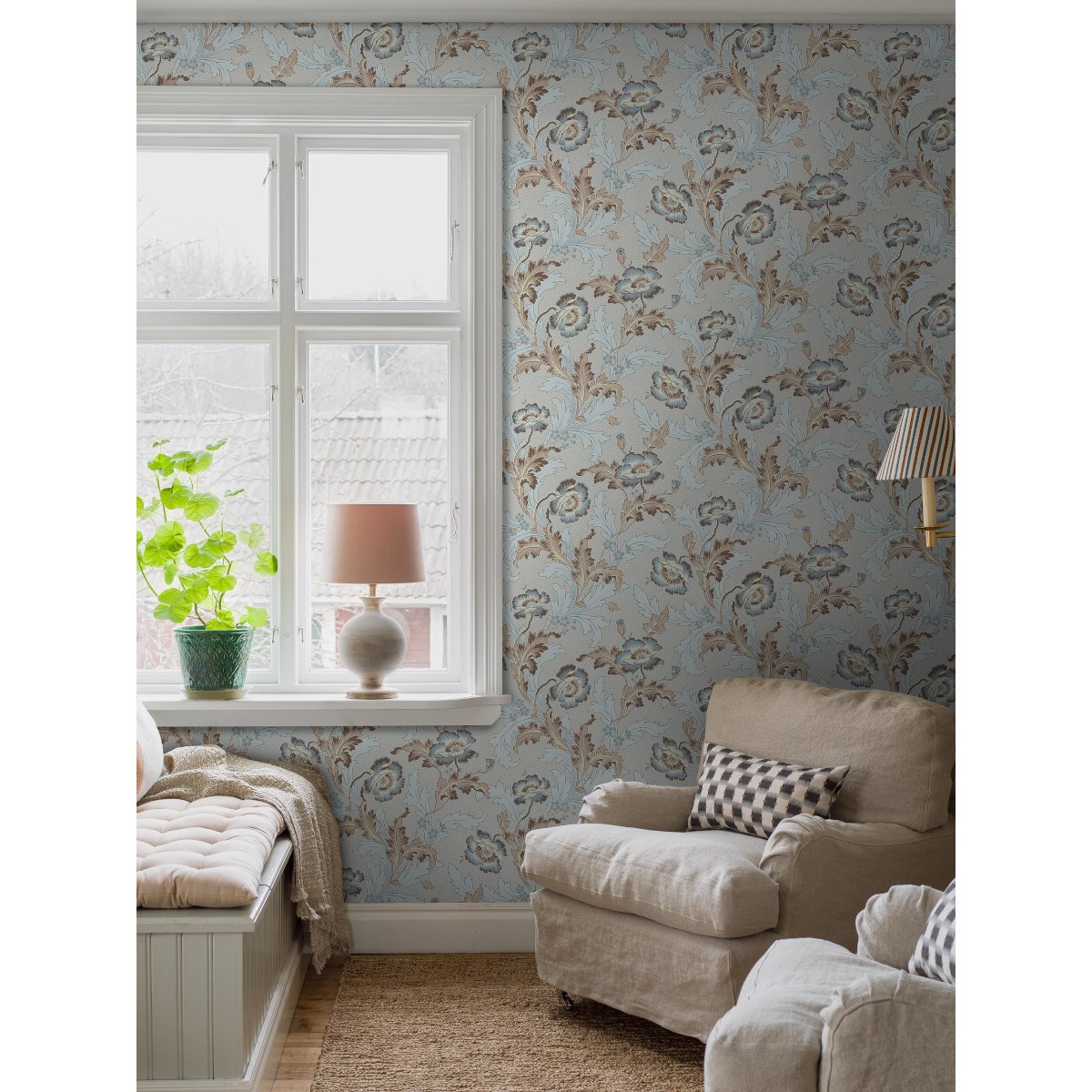 På den storblommiga tapeten Göteborg slingrar ståtlig vallmo över en småprickig botten. Mönstret är mycket naturtroget, här finns vallmons alla karaktärsdrag från de yviga kronbladen och vackra frökapslarna till de flikiga bladen och håriga stjälkarna. Tapeten kommer från Göteborgs tapetfabrik och är daterad till 1890-talet, en tid då verklighetstrogna botaniska mönster var högsta mode.
