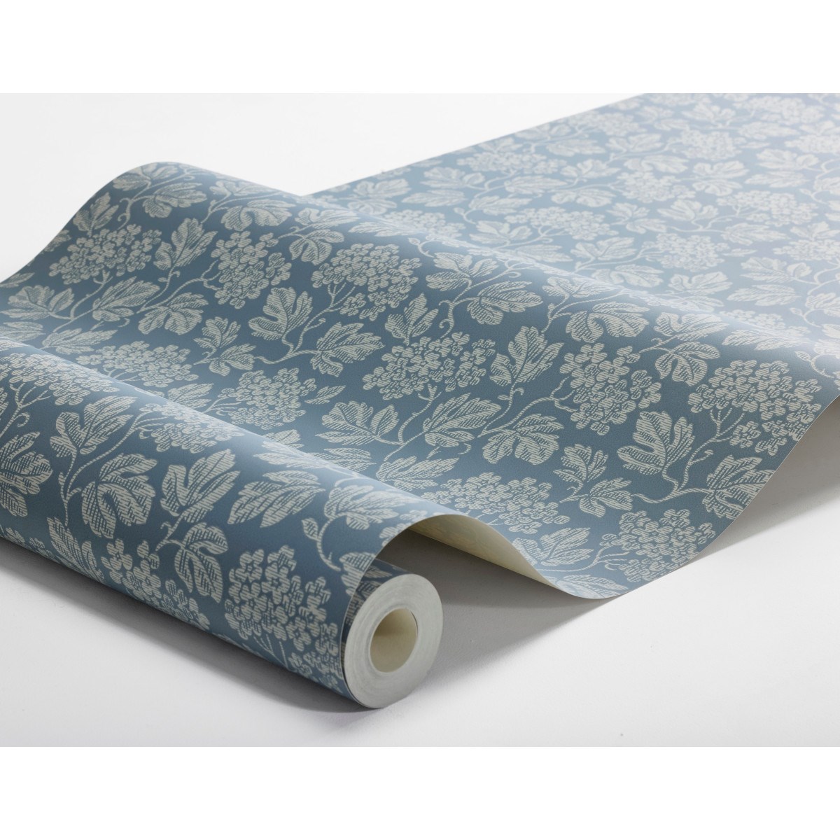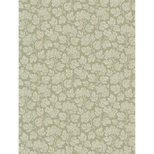 Här ser du tapeten Hagtorn limtryckt med ljust gråbeige mönster på en lent duvblå botten som drar lite åt grått.