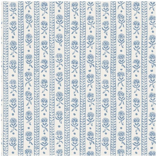 stiliserade nejlikor. Mönstret är hämtat från en tryckstock i trä och har anor ända från 1700-talet, då ränder likt denna var mycket populära både på textil och tapet.