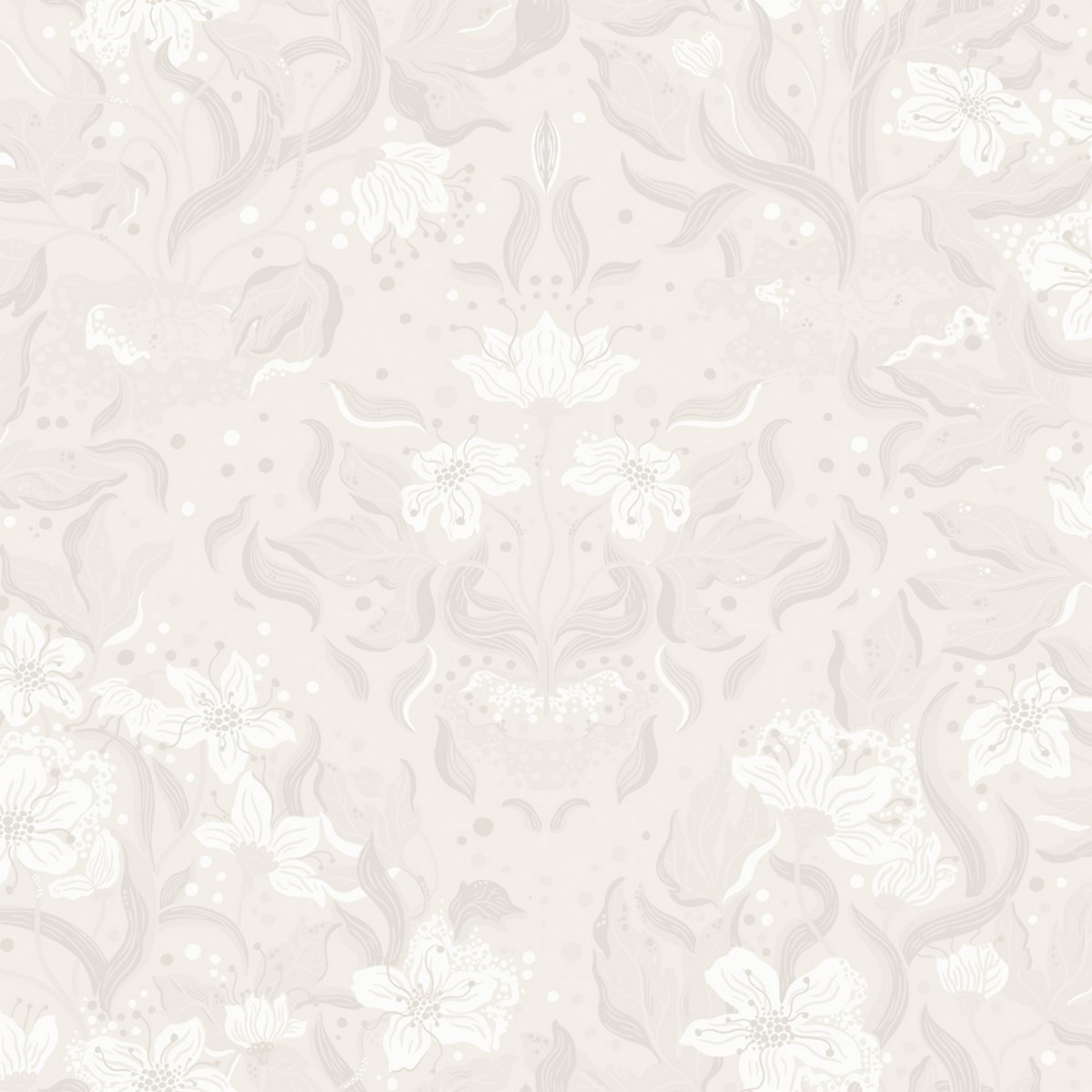 Beige blommig tapet med beige blad och vita blommor I kollektionen Fägring har Lina Schnaufer jobbat med livet och li...