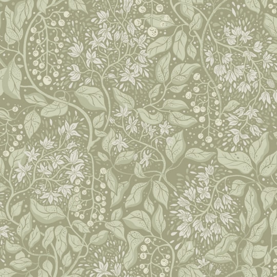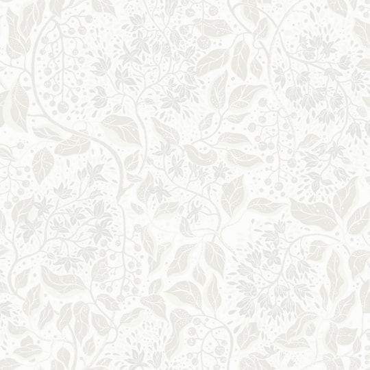 Vit tapet med neutrala blommor och gröna blad