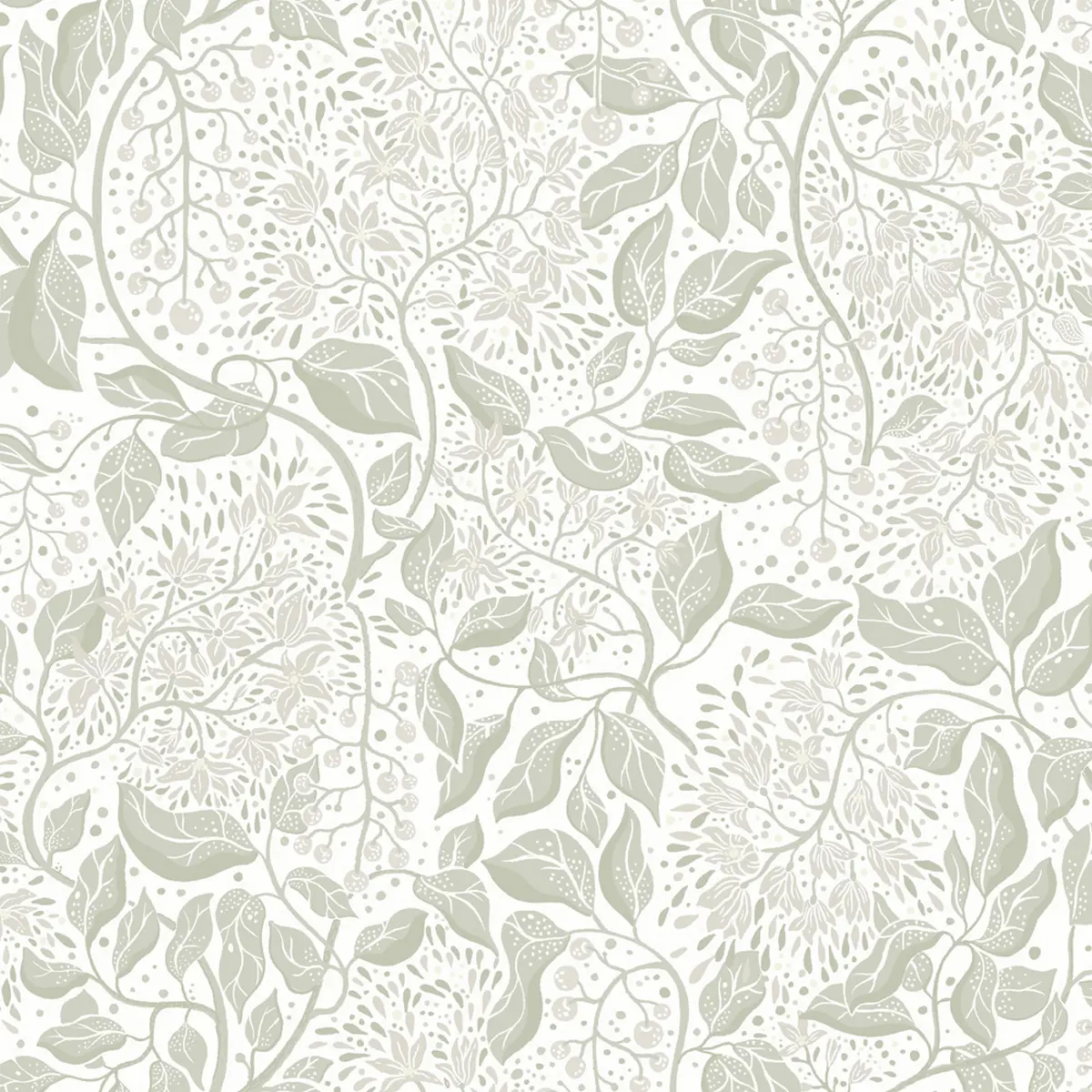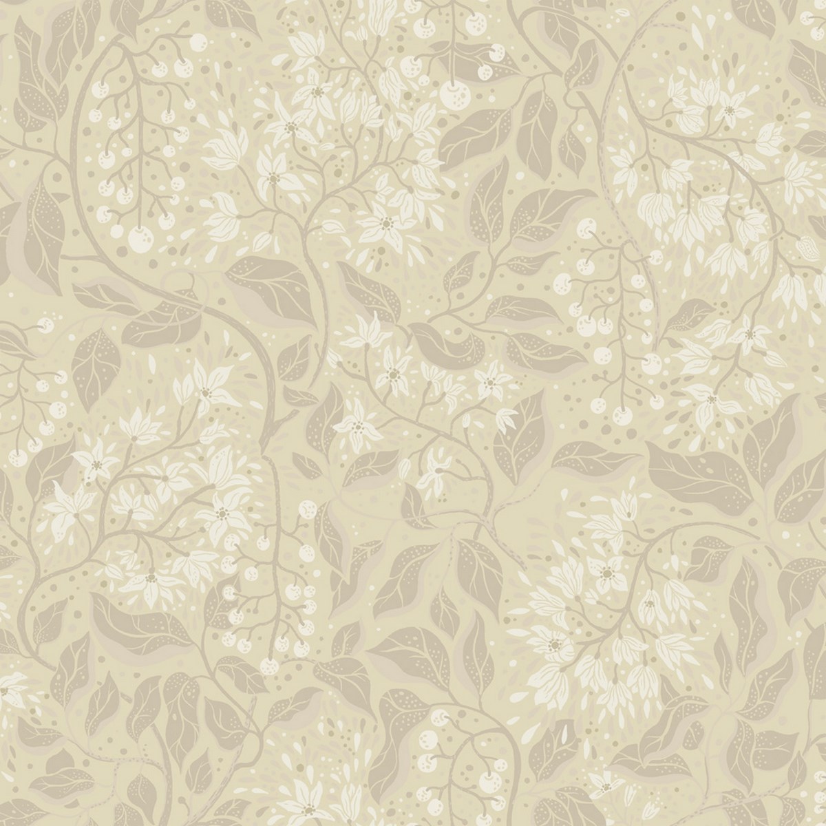 Beige tapet med blommor och blad I kollektionen Fägring har Lina Schnaufer jobbat med livet och livscykeln som inspir...