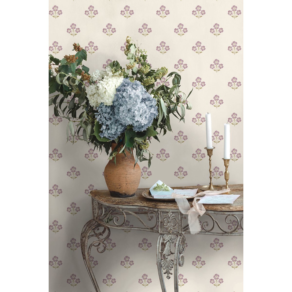 Småskaliga blommönster skapar en charmig och klassisk estetik. De subtila och återhållsamma färgtonerna ger en romantisk känsla till vilket rum som helst. Genom att betona enkelhet och elegans kan denna design appliceras på alla fyra väggar utan att dominera rummet.