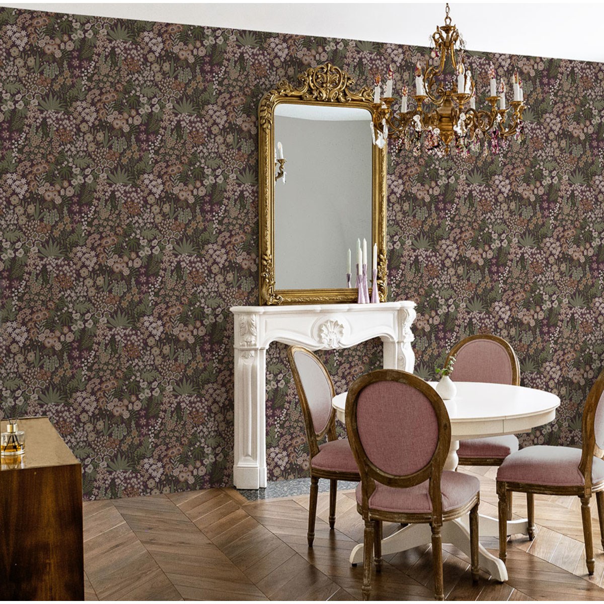 Ett heltäckande blommönster med täta, små detaljer i en jämn upprepning, vilket skapar känslan av en ständigt blommande trädgård. Finns i olika mjuka men uttrycksfulla färgtoner som förstärker designens livfullhet.