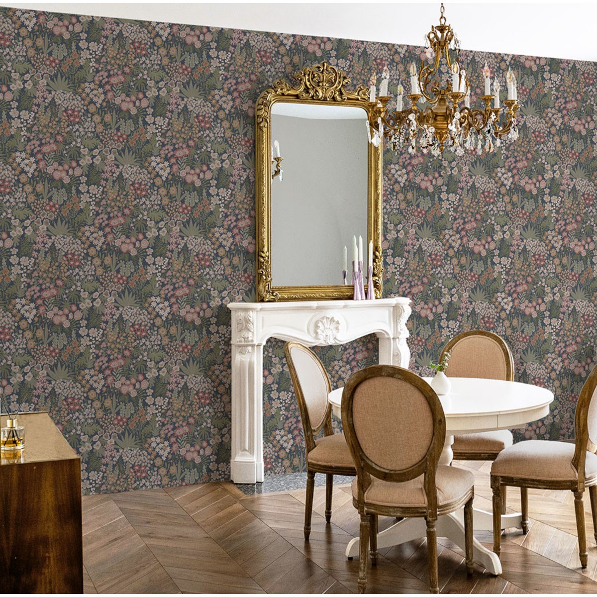 Ett heltäckande blommönster med täta, små detaljer i en jämn upprepning, vilket skapar känslan av en ständigt blommande trädgård. Finns i olika mjuka men uttrycksfulla färgtoner som förstärker designens livfullhet.