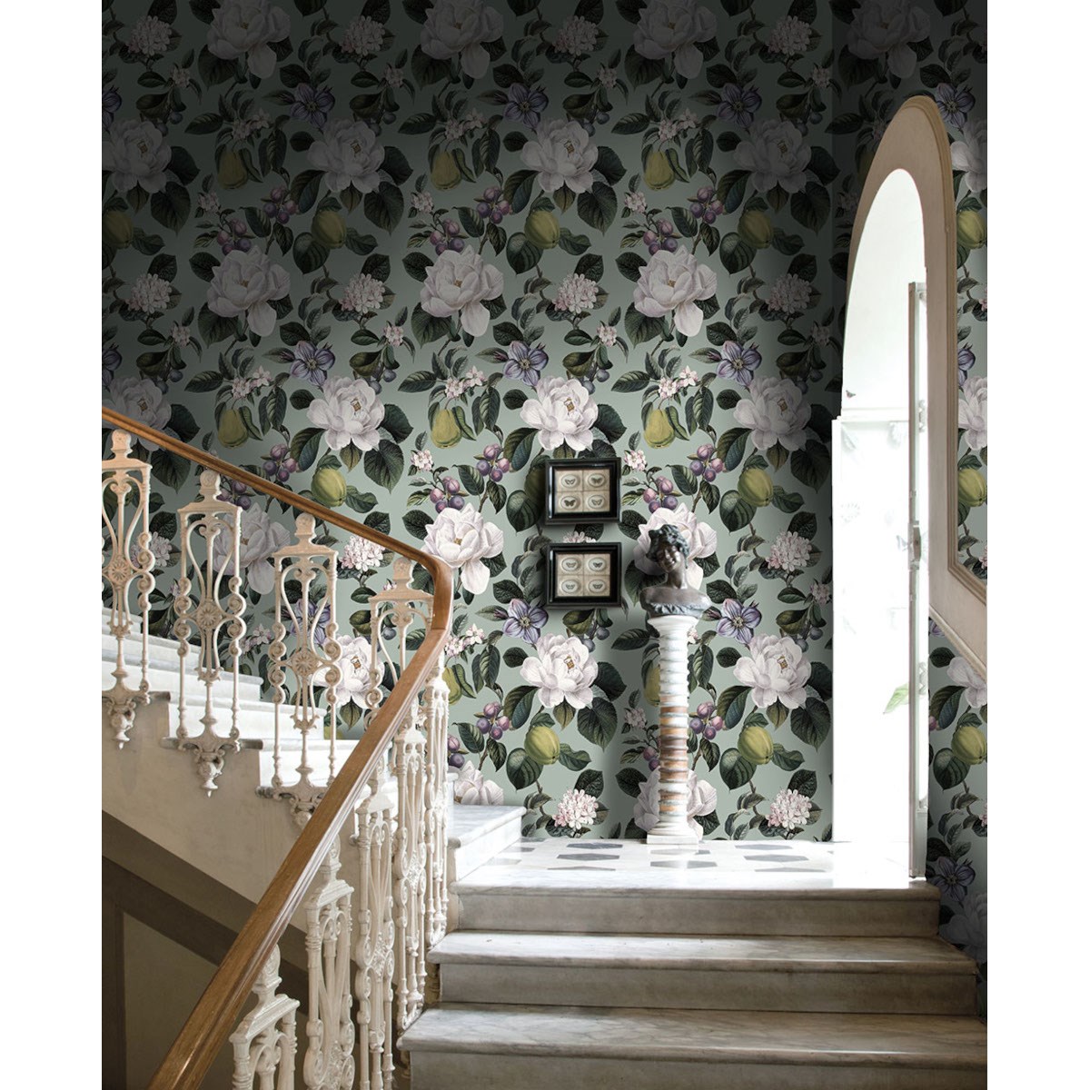 Ett elegant mönster med päron och blomster, inspirerat av naturens charm. Designen har en vacker, flytande rörelse och finns i en palett av lugna men effektfulla bakgrundsfärger, vilket gör att frukter och blommor framträder i en harmonisk balans.
