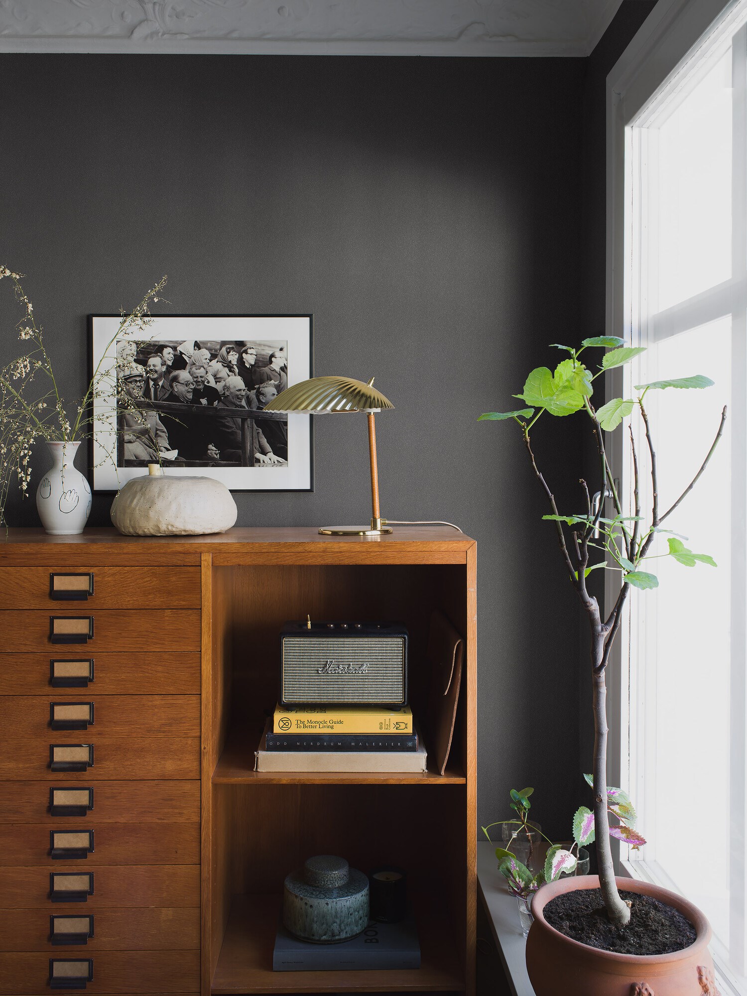 Enfärgade tapeten Volcanic Sand går i en dämpad, svartgrå ton som vi kallar mild svart – en mörk neutral kulör som skapar en lugn atmosfär och bryter av mjukt mot ljusare färger. Inspirationen kommer från en svart vulkanstrand och tapeten har en diskret, taktil sandstruktur som ger ytan djup och vacker lyster.Volcanic Sand ingår i kollektionen Pigment, en enfärgad kollektion med smidiga, täckande EasyUp-tapeter som är lätt att sätta upp och ger släta väggar utan synliga skarvar.