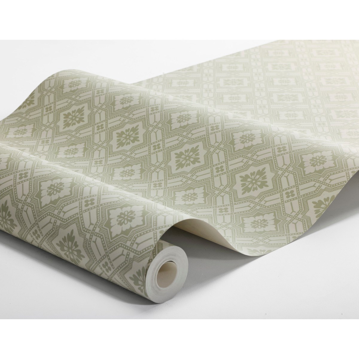 riedrich är en hemtrevlig, mönstrad tapet, daterad 1910–1920. Originalet i vårt arkiv har namnet Friedrich stämplat på framsidan och vi gissar att tapeten köptes från en tysk mönsterverkstad – det var vanligt innan vår svenska mönsterproduktion tagit fart. Mönsterbilden är symmetrisk och ser likadan ut från alla håll, vilket gör att denna tapet gör sig bra både på vägg och i tak.