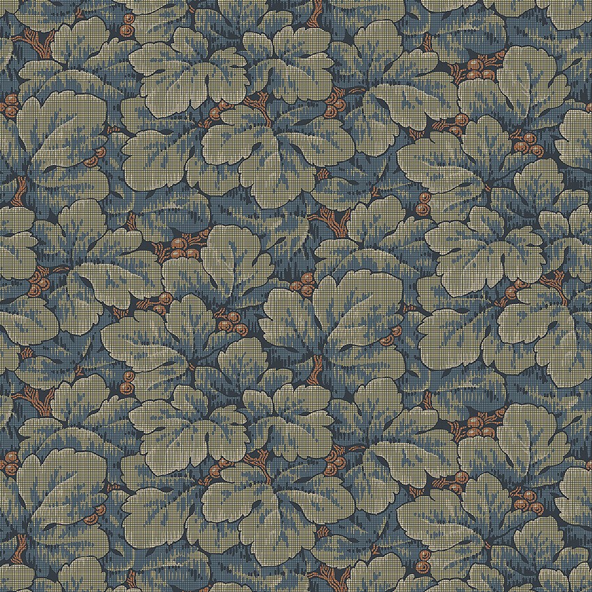 Här ser du Waldemar med gröna blad med gråblå skuggor och vackert guldbruna detaljer. En färgställning som är väldigt lik originaltapeten från tidigt 1900-tal, men som också fungerar fint i en modernare interiör.