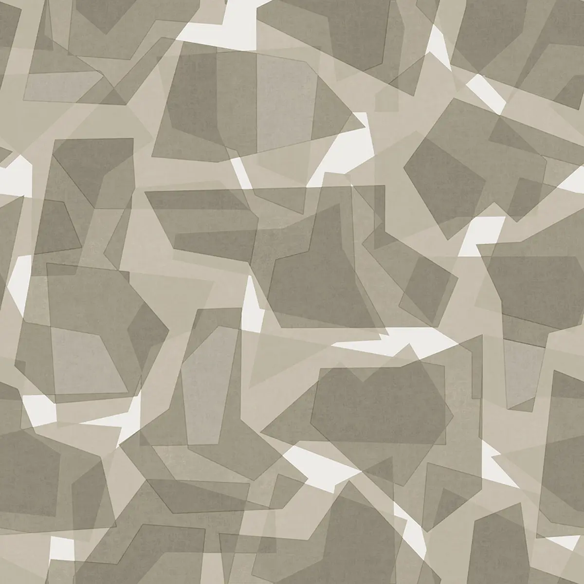 Grå tapet med geometriskt camouflage mönster. Upptäck ett experimentellt möte mellan det mjuka industriella och det n...