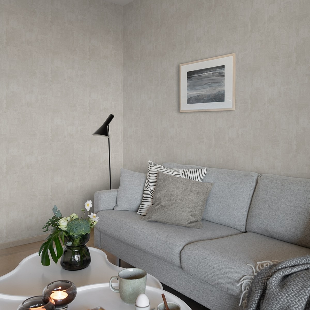 Grå cement tapet med lätta text detaljer. Upptäck ett experimentellt möte mellan det mjuka industriella och det natur...