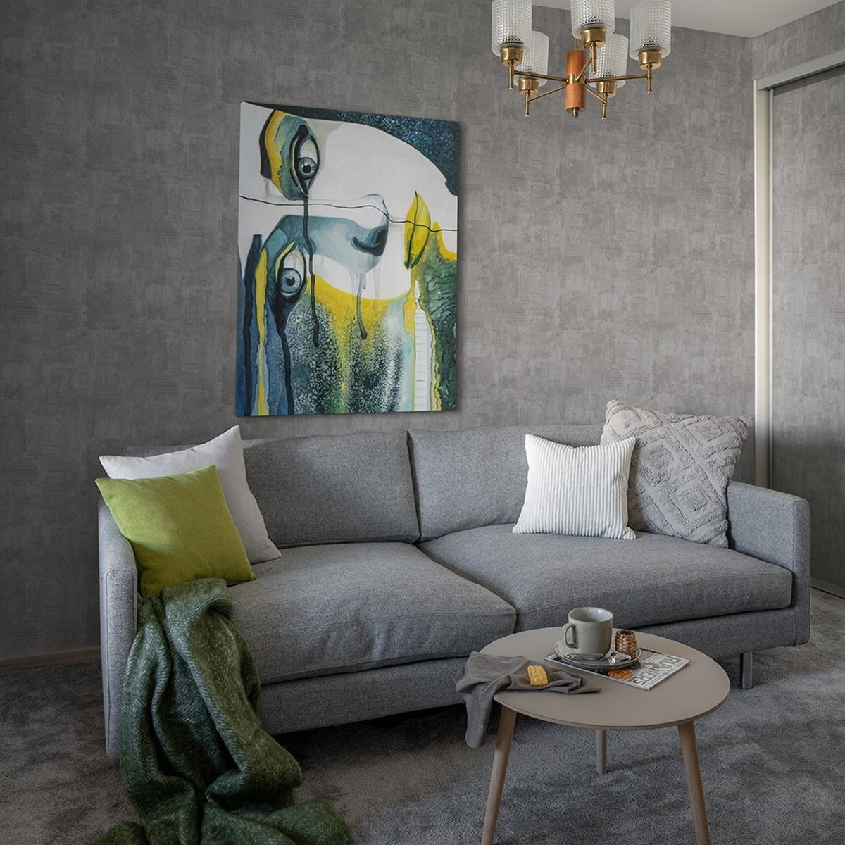 Grå cement tapet med lätta text detaljer. Upptäck ett experimentellt möte mellan det mjuka industriella och det natur...