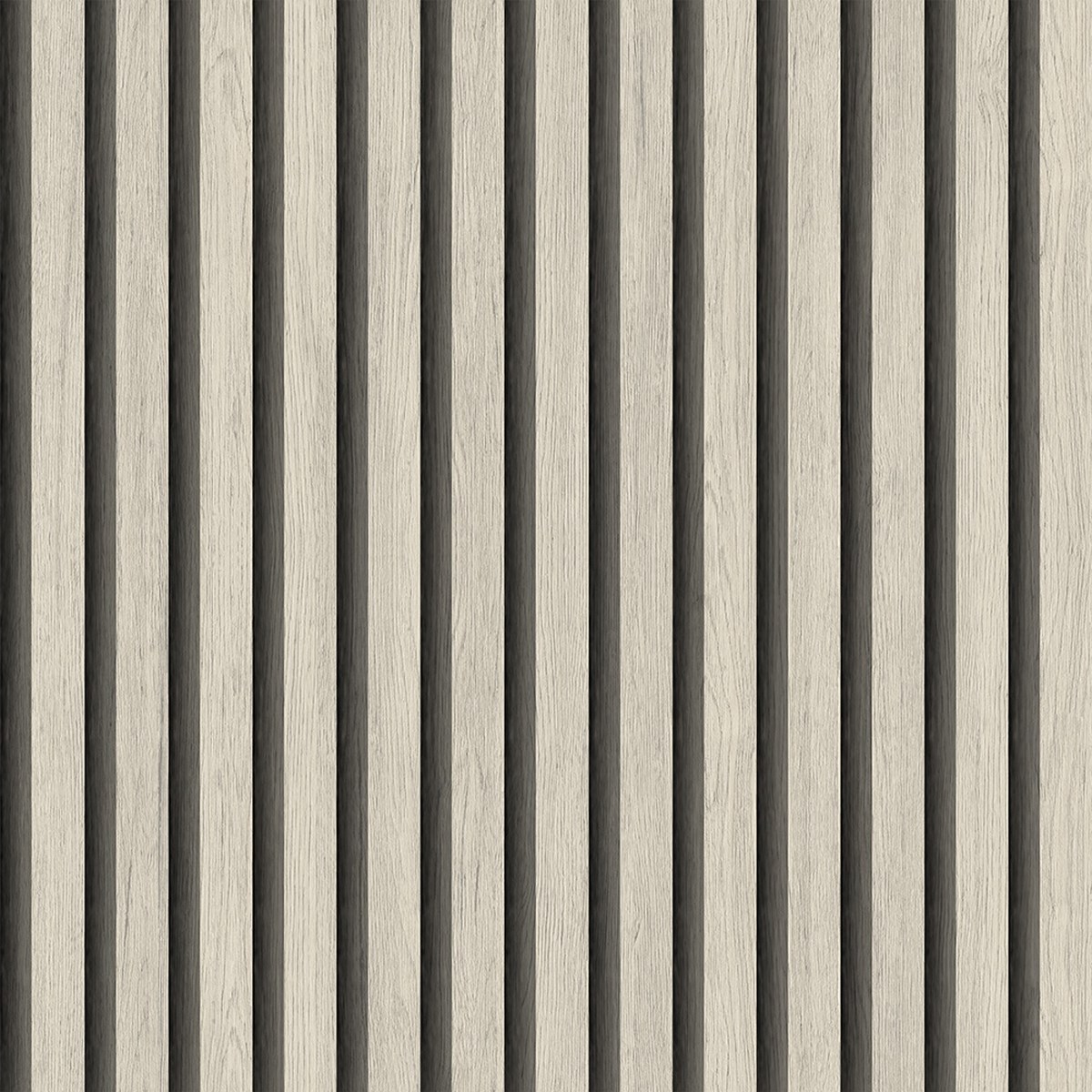 Tapet med smal träpanel i vitbetsad ek. Upptäck ett experimentellt möte mellan det mjuka industriella och det naturli...