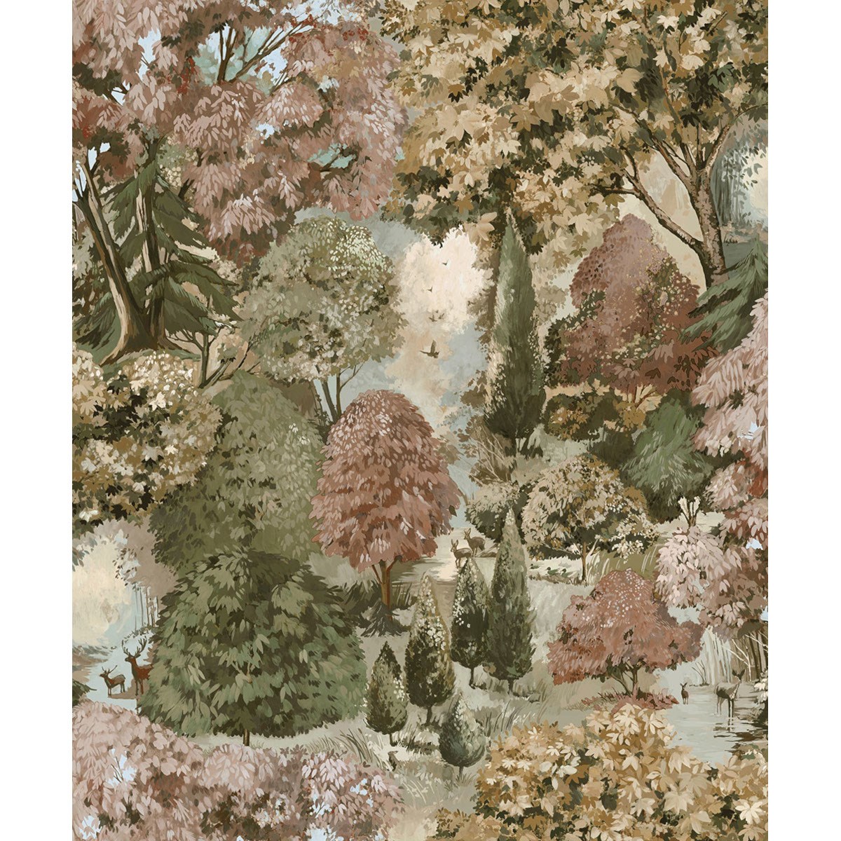 Detaljerade penseldrag ger textur till de natursköna skogsvyerna. Eleganta, höga träd, porlande bäckar och ljusinslag skapar en design med både djup och dimension.