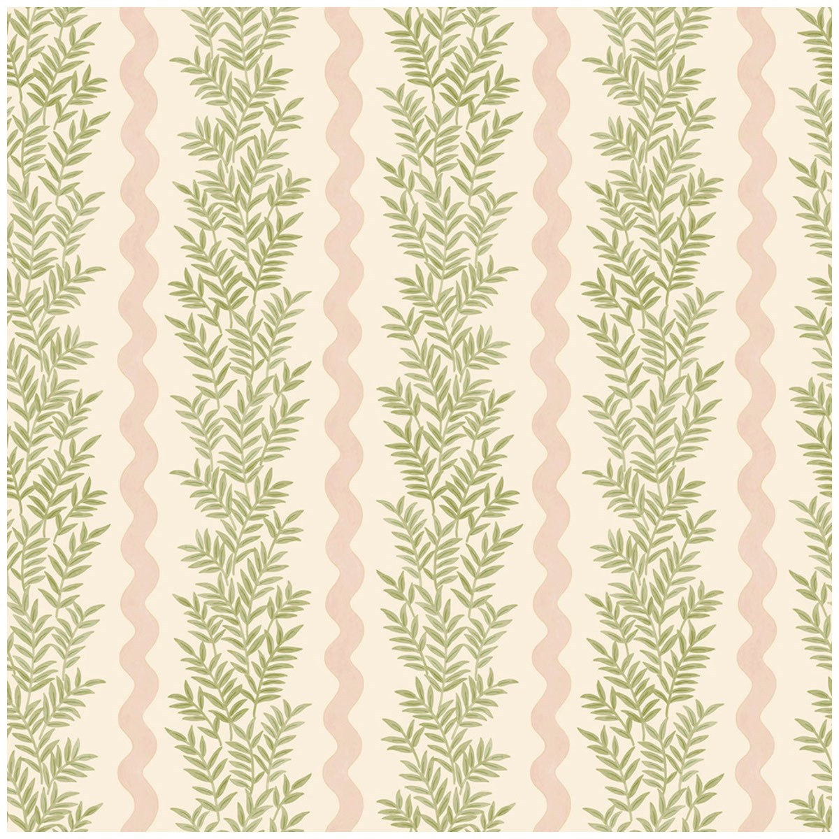 Pipkin Stripe kombinerar elegans och natur i en modern tolkning av ett klassiskt randigt mönster. Bladen skapar djup och intresse i den naturliga, svepande rörelsen hos växtligheten, inramad av mjuka vertikala vågor som ger struktur