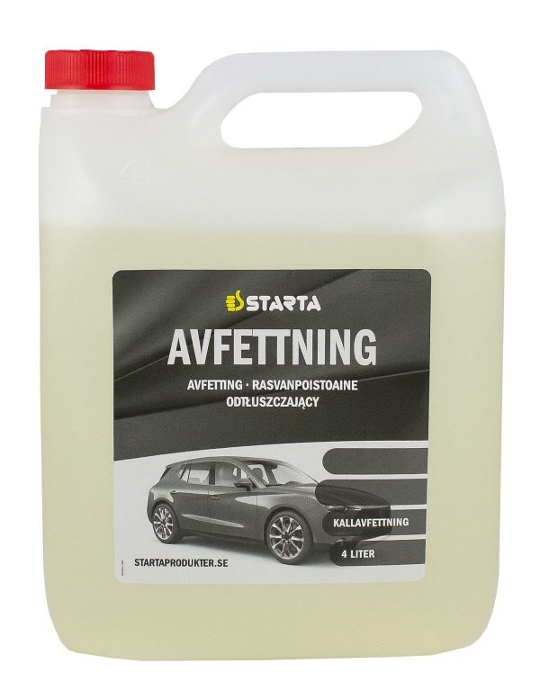 STARTA Avfettningsmedel är ett snabbseparerande, petroleumbaserat kallavfettningsmedel. Mycket snabbverkande och löser all olja, asfalt, fett, vägsalt m.m.