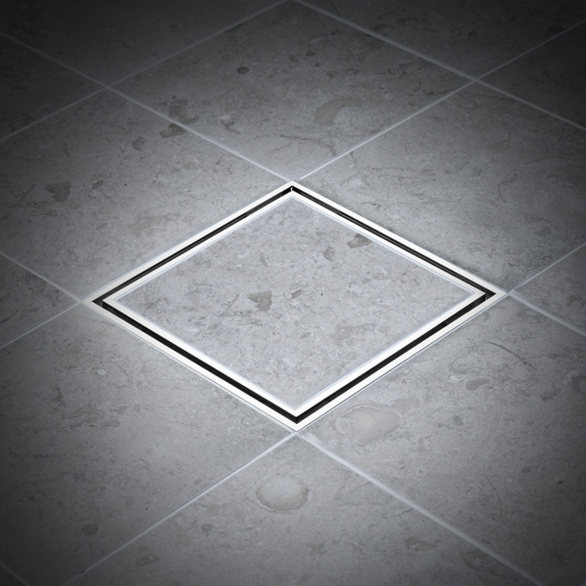Stilren golvbrunnssil med ram för montering av klinker. Tillverkad av borstat rostfritt stål typ AISI 316. Består av två delar: Klinkerram och klinkerlåda. Godstjocklek: 0,8 mm. Syrafast. Rekommenderad i miljöer med högre krav där t.ex. klorider och salt förekommer.