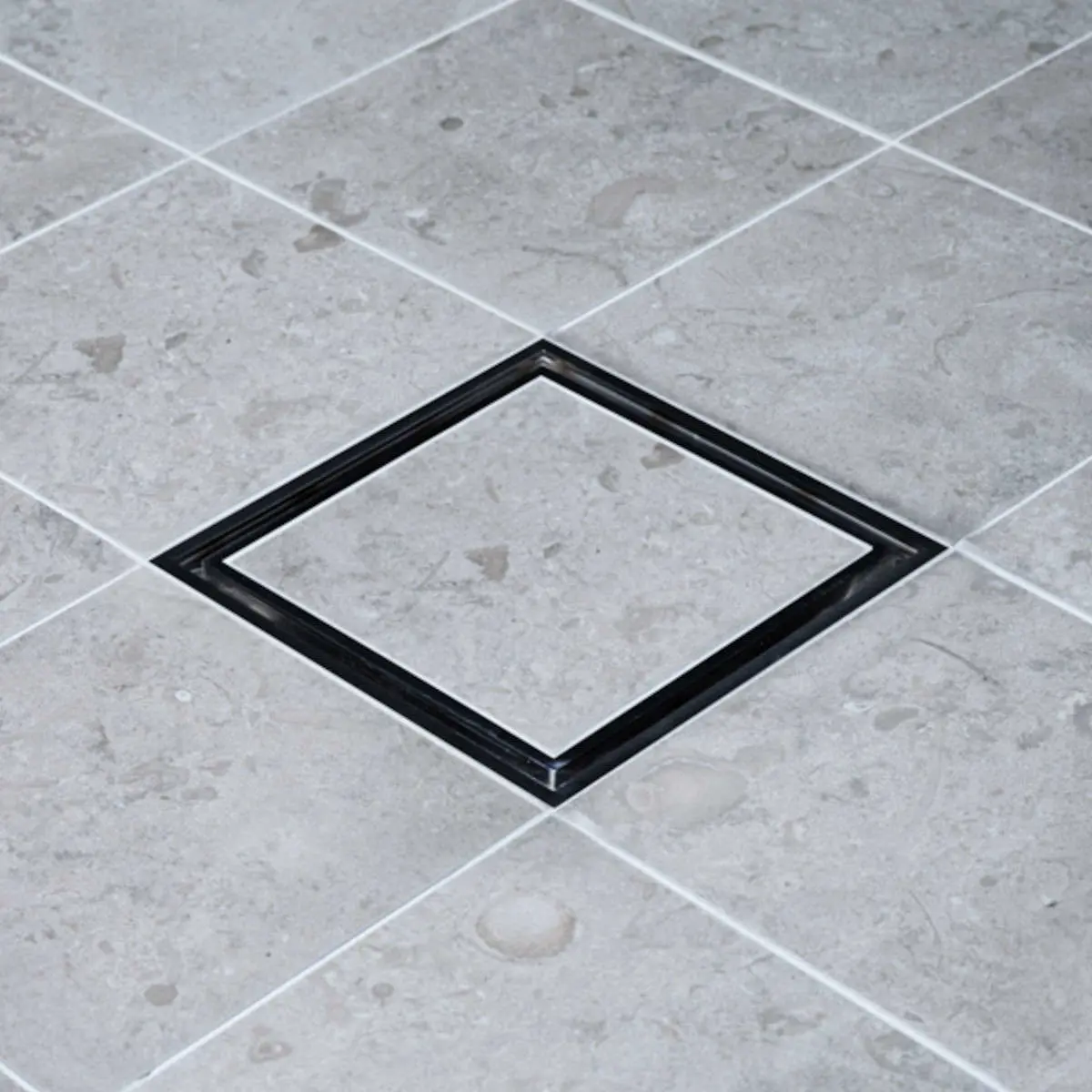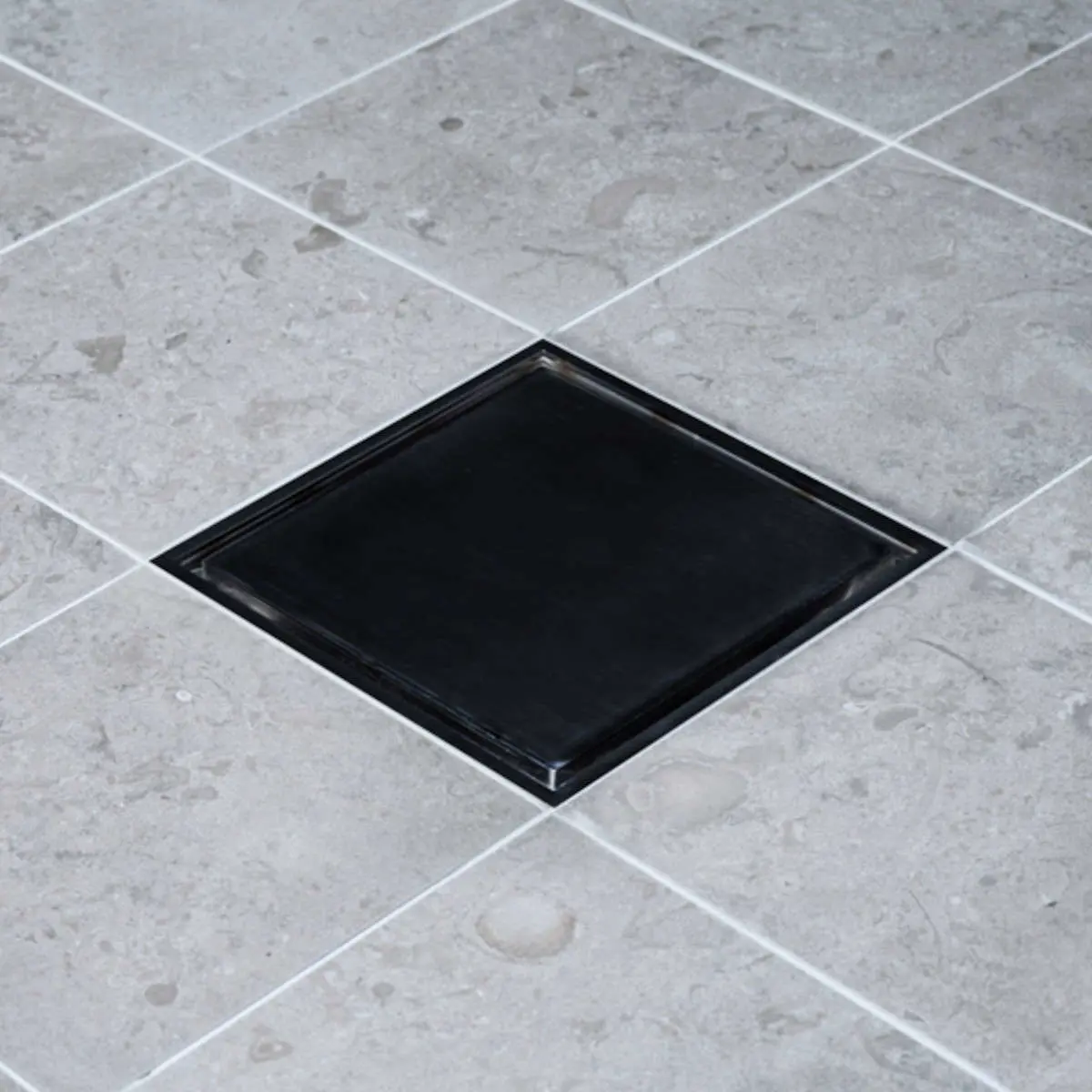 Tebo Golvbrunnssil Tile In Black. Stilren matt svart pulverlackerad golvbrunnssil med ram för montering av klinker. Tillverkad av rostfritt stål typ AISI 304. Består av två delar: Klinkerram och klinkerlåda. Godstjocklek: 0,8 mm. Vändbar klinkerlåda med en sida för montering av klinker och en med slät svart pulverlackerad yta.Före installation av golvbrunnsilen: Säkerställ att diametern på vattenlåset är kompatibelt med golvbrunnssilens håldiameter (130mm) så att vattenlåset går att ta upp och rensa.Mått Ram: 147x16.5x147Mått Klinkerlåda: 117x11x117mm