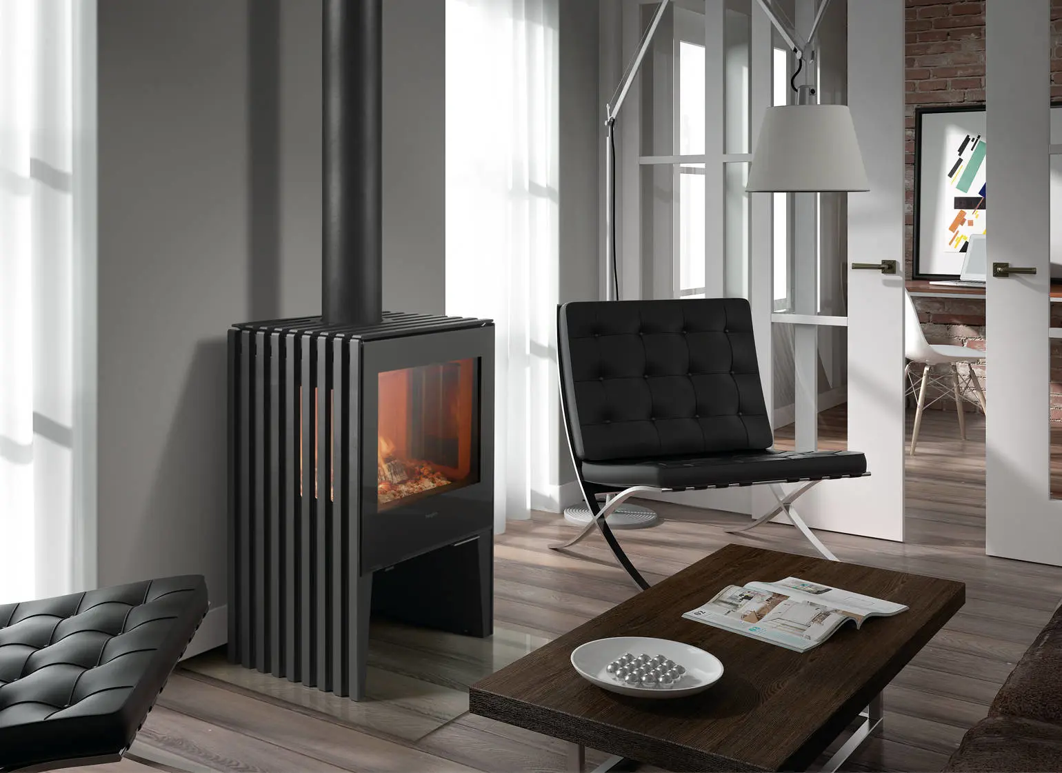 Hergom Glance är en gjutjärnskamin med sidoglas med insyn till elden från sidorna. Gjutjärnskamin Glance är i en stilren design som är klädd med vermiculit, vilken är utbytbar. Glance passar bra i alla hem.