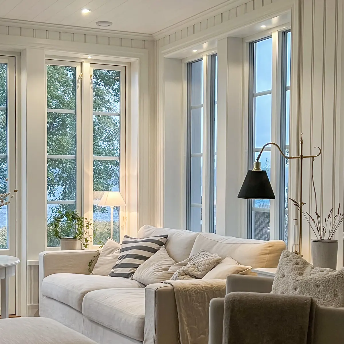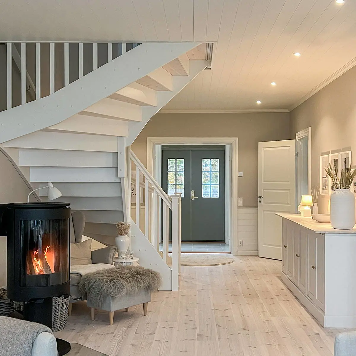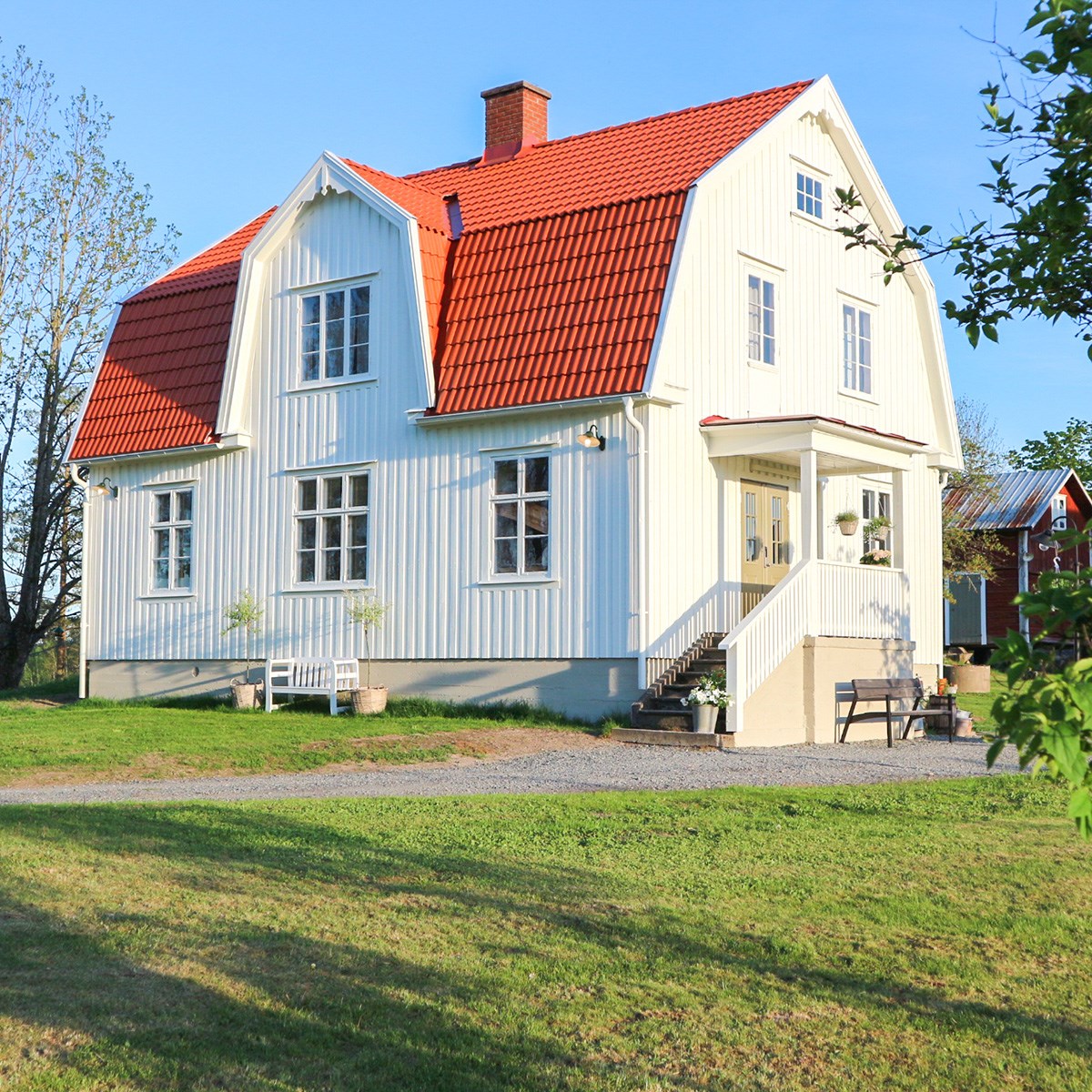 Sandra är en tjej med många järn i elden, hon har drivit egna butiker och jobbat med inredning sedan 2009 där hon även väver in sitt arbete som influencer. Vi och många av er har följt henne genom renovering av en obebodd gård på den värmländska landsbygden, där rummen, fasaden, ladugårdsdörren och mycket annat målades i Sandras vackra kulörer. Gården såldes och intresset var stort! Våren 2021 bar det av till natursköna Borgvik och en arkitekt ritad villa i äldre stil byggdes. Villan blev fantastisk och syns på flera av inspirationsbilderna på den här sidan. Med tiden växte familjen med ett tredje barn.