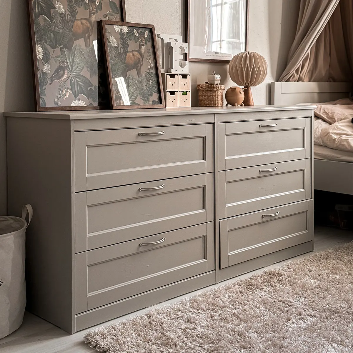 En dämpad beige, som är lite mörkare än Sandras Cappucino och Sandras Latte. Sandras Ebbe gör sig lika bra på väggen som på lister och möbler.
