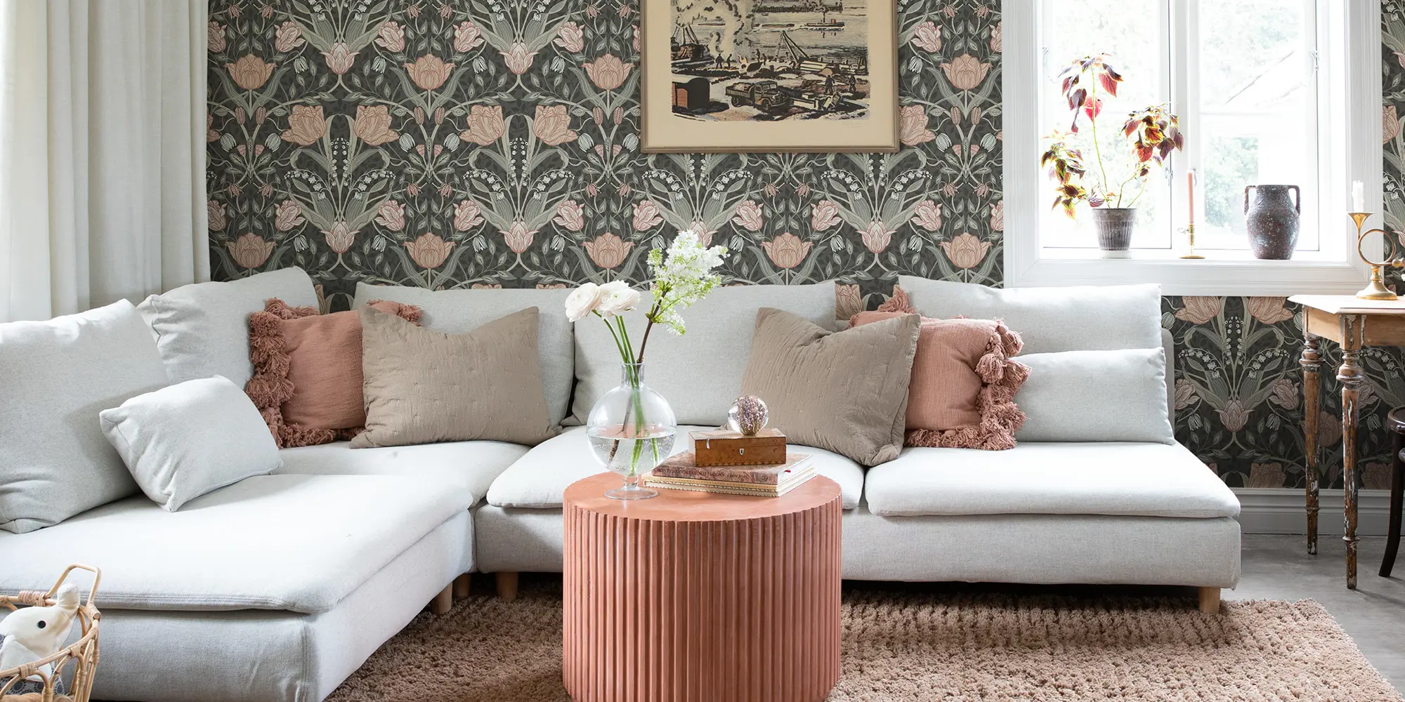 En lustfylld, jordnära mönstermix i en mjuk, ombonad färgskala. Hela tapetkollektionen genomsyras av nordisk natur och hantverkstradition.